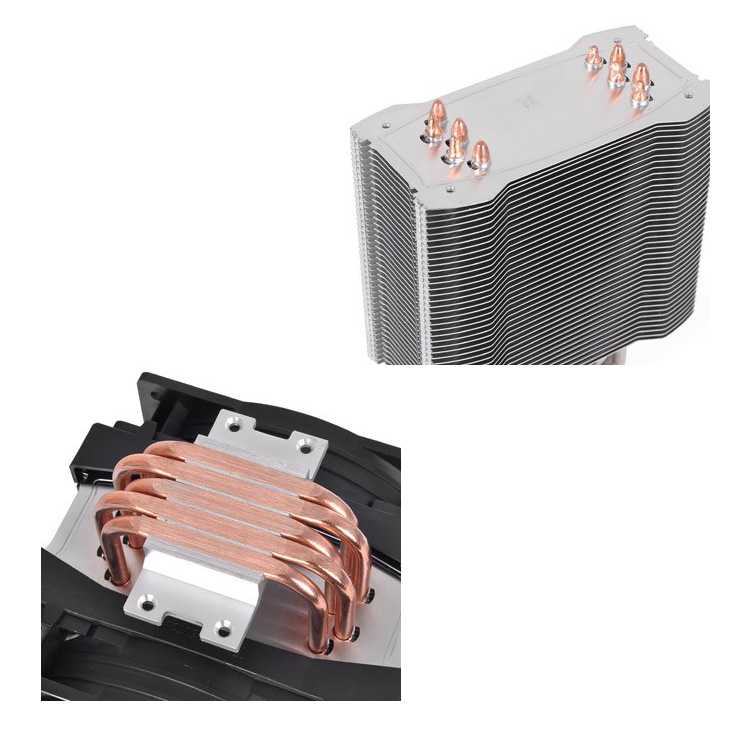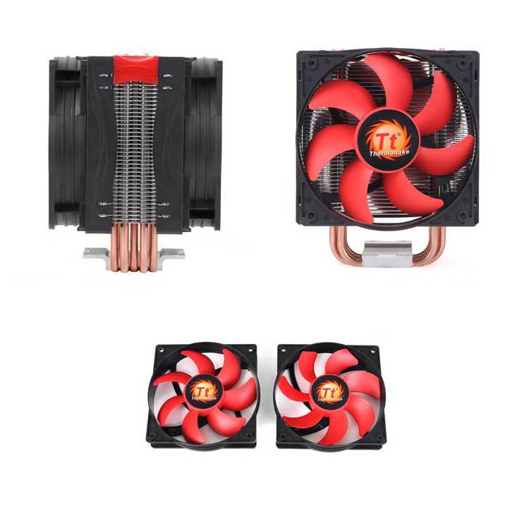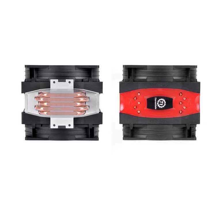 La solución perfecta para los amantes del overclocking y de la potencia. Incluye 5 heatpipes de 6 mm de diámetro que conducen el calor desde la base hacia las aletas de refrigeración de aluminio. Dos ventiladores de 13 cm con aspas rojas son los encargados de disipar el calor eficientemente maximizando o minimizando las revoluciones según las necesidades.