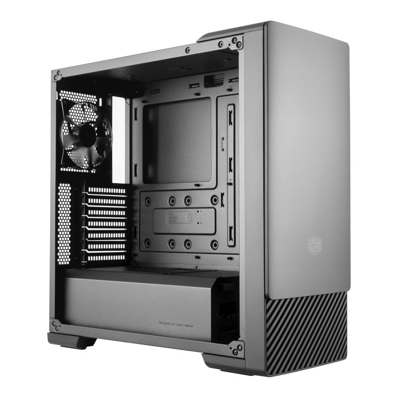 Descripción Cooler Master E500, MasterBox. Factor de forma: Midi-Tower, Tipo: PC, Material: De plástico, Acero. Ubicación de fuente de alimentación: Fondo, Factores de forma de la fuente de alimentación compatibles: ATX. Diámetro de ventiladores frontales soportados: 120,140 mm, Ventiladores traseros instalados: 1x 120 mm, Diámetro de ventiladores traseros soportados: 120 mm. Tamaños de disco duro soportados: 2.5,3.5". Ancho: 218 mm, Profundidad: 482 mm, Altura: 485 mm