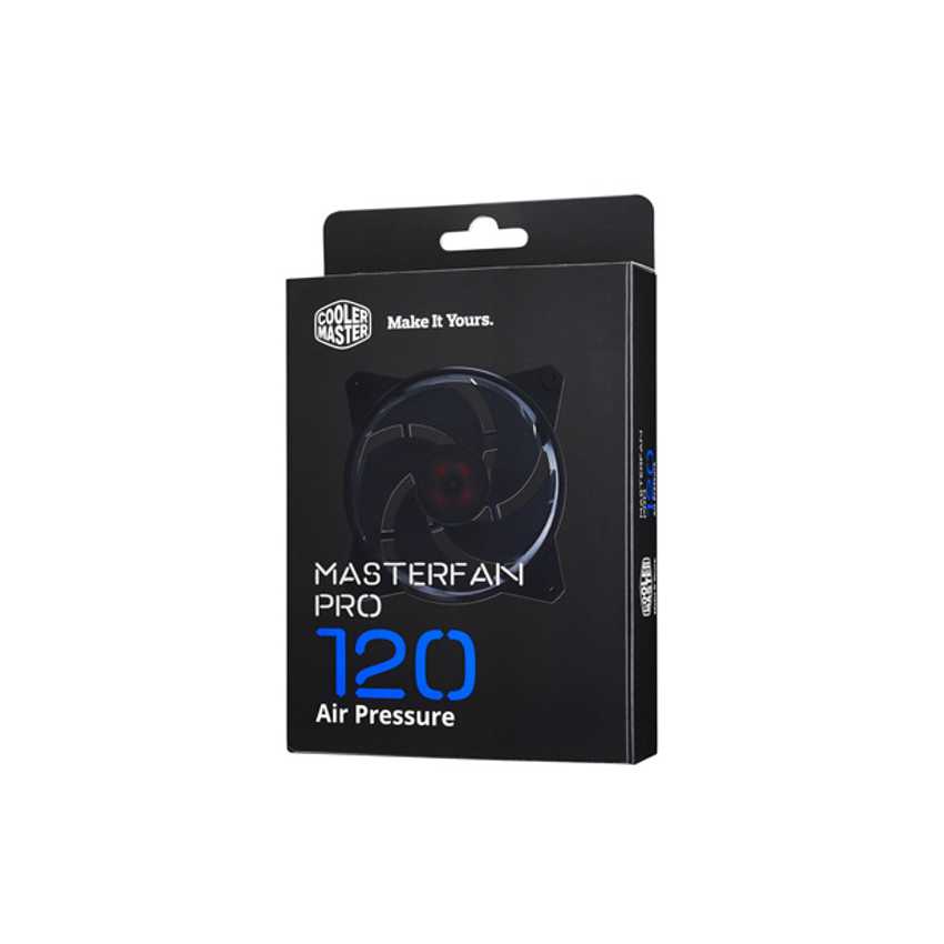 Descripción Cooler Master MasterFan Pro 120 Air Pressure. Adecuado para: Carcasa del ordenador, Tipo: Ventilador, Diámetro de ventilador: 12 cm. Color del producto: Negro. Dimensiones del ventilador (A x A x P): 120 x 120 x 25 mm, Peso de ventilador: 158 g