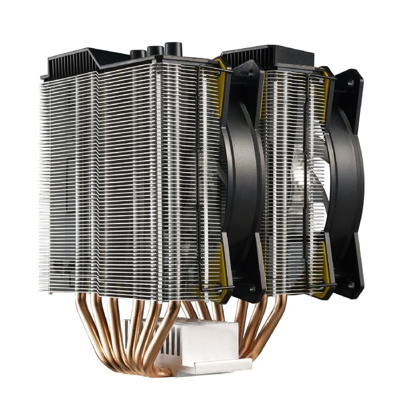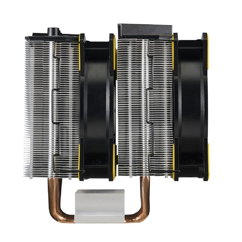 Descripción Cooler Master MasterAir MA620P. Adecuado para: Procesador, Tipo: Enfriador, Sockets de procesador soportados: LGA 1150 (Zócalo H3), LGA 1151 (Zócalo H4), LGA 1155 (Socket H2), LGA 1156 (Socket H), LGA 1366.... Iluminación de color: Rojo/Verde/Azul, Color del producto: Negro, Amarillo. Consumo energético: 3,6 W, Intensidad nominal: 0,3 A, Corriente de seguridad: 0,37 Ah. Peso: 1,31 kg, Dimensiones del ventilador (A x A x P): 120 x 120 x 25 mm, Dimensiones disipador de calor (W x D x H): 110,1 x 116 x 165 mm. Largo de la caja principal: 36,5 cm, Longitud de la caja: 49,7 cm, Alto de la caja principal: 26,5 cm
