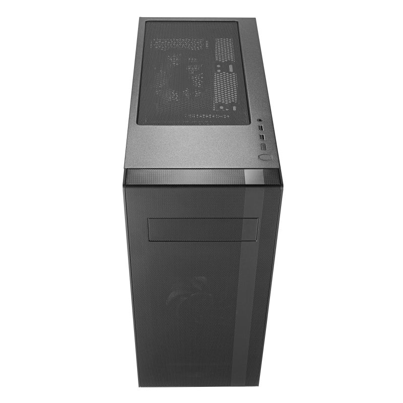 Tipo: PC Material: De plástico, Acero Color del producto: Negro Formas de factor de tarjeta madre soportadas: ATX,Micro ATX,Mini-ITX Número de puertos 3.5": 4 Ventana lateral: Si Número de bahías 2.5: 5 Número de ranuras de expansión: 7 Adecuado para: Juego Panel(es) de vidrio templado: Si Filtro anti-polvo: Si Gestión de cables: Si Botón de restaurar: Si Botón de encendido/apagado: Si Altura máxima de la CPU más fresco: 16,6 cm Máxima longitud de la tarjeta de gráficos: 41 cm Máxima longitud de PSU: 18 cm Fuente de alimentación incluida: No Ubicación de fuente de alimentación: Fondo Factores de forma de la fuente de alimentación compatibles: ATX Cantidad de puertos tipo A USB 3.0 (3.1 Gen 1): 2 Entrada de audio: Si Salida de audio: Si Ventiladores frontales instalados: 1x 120 mm Número de ventiladores frontales soportados (max.): 3 Diámetro de ventiladores frontales soportados: 120,140 mm Ventiladores traseros instalados: 1x 120 mm Número de ventiladores posteriores soportados: 1 Diámetro de ventiladores traseros soportados: 120 mm Número de ventiladores superiores soportados: 2 Diámetros de ventiladores superiores soportados: 120,140 mm Capacidad de enfriamiento líquido: Si Tamaño de ventilador del radiador frontal compatible: 140,240,280,360 mm Tamaño de ventilador del radiador trasero compatible: 120 mm Tamaño de ventilador superior soportado: 120,240 mm Tamaños de disco duro soportados: 2.5,3.5" Ancho: 209 mm Profundidad: 478 mm Altura: 473 mm Peso: 6,57 kg Ancho del paquete: 290 mm Profundidad del paquete: 550 mm Altura del paquete: 552 mm Peso del paquete: 7,86 kg