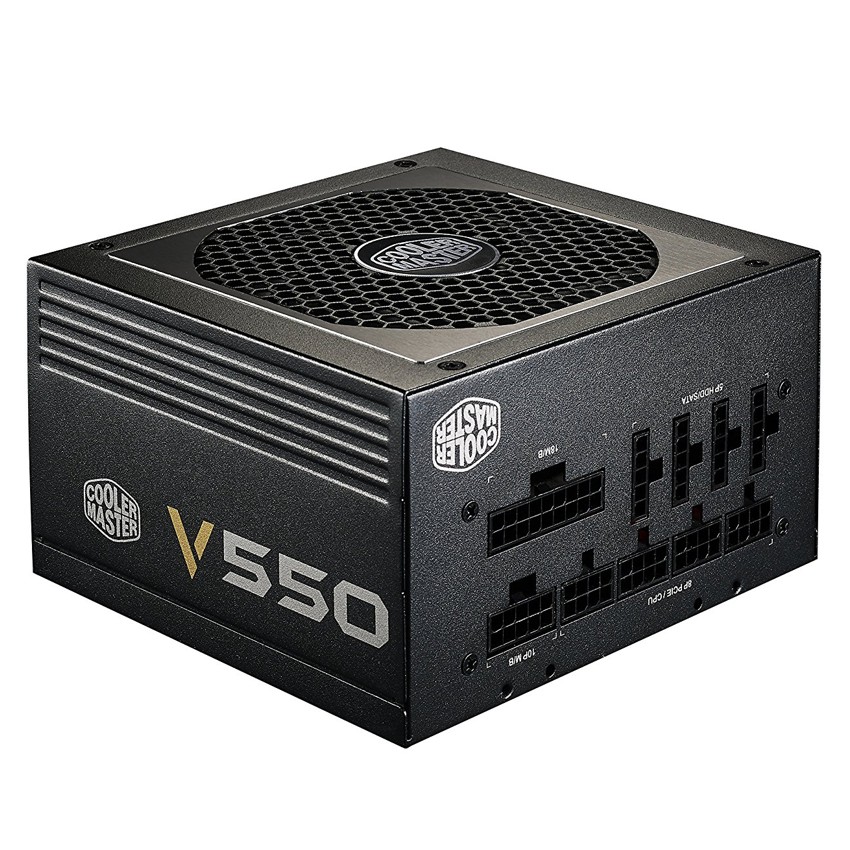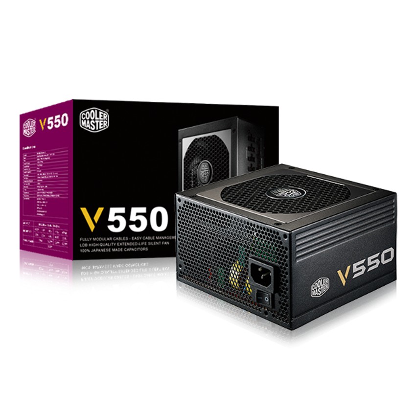 Descripción Cooler Master V550. Potencia total: 550 W, Voltaje de entrada AC: 100 - 240, Frecuencia de entrada AC: 50 - 60. Diámetro de ventilador: 12 cm, Número de ventiladores: 1 Ventilador(es). Alimentador de energía para tarjeta madre: 20+4 pin ATX, Tipo de cableado: Modular. Factor de forma: ATX, Utilizar con: PC, Tiempo medio entre fallos: 100000 h. Color del producto: Negro