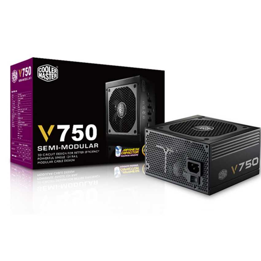 Descripción Cooler Master V750. Potencia nominal: 750 W, Voltaje de entrada AC: 100 - 240 V, Frecuencia de entrada AC: 50 - 60 Hz. Diámetro de ventilador: 12 cm, Ubicación de ventilador: Superior. Alimentador de energía para tarjeta madre: 20+4 pin ATX, Tipo de cableado: Modular. Factor de forma: ATX, Utilizar con: PC, Versión ATX: 2.31. Color del producto: Negro
