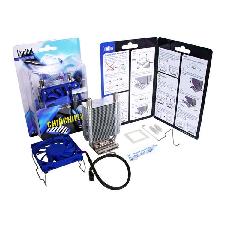 Con un heatpipe doble de 6 mm y un ventilador de 60 mm, el ChipChilla enfría eficientemente los chipsets de hoy en día con un ruido mínimo. Gracias al diseño asimétrico y el sistema de anclaje ''push-pins'' ChipChilla ofrece una amplia compatibilidad con sistemas Intel y AMD.