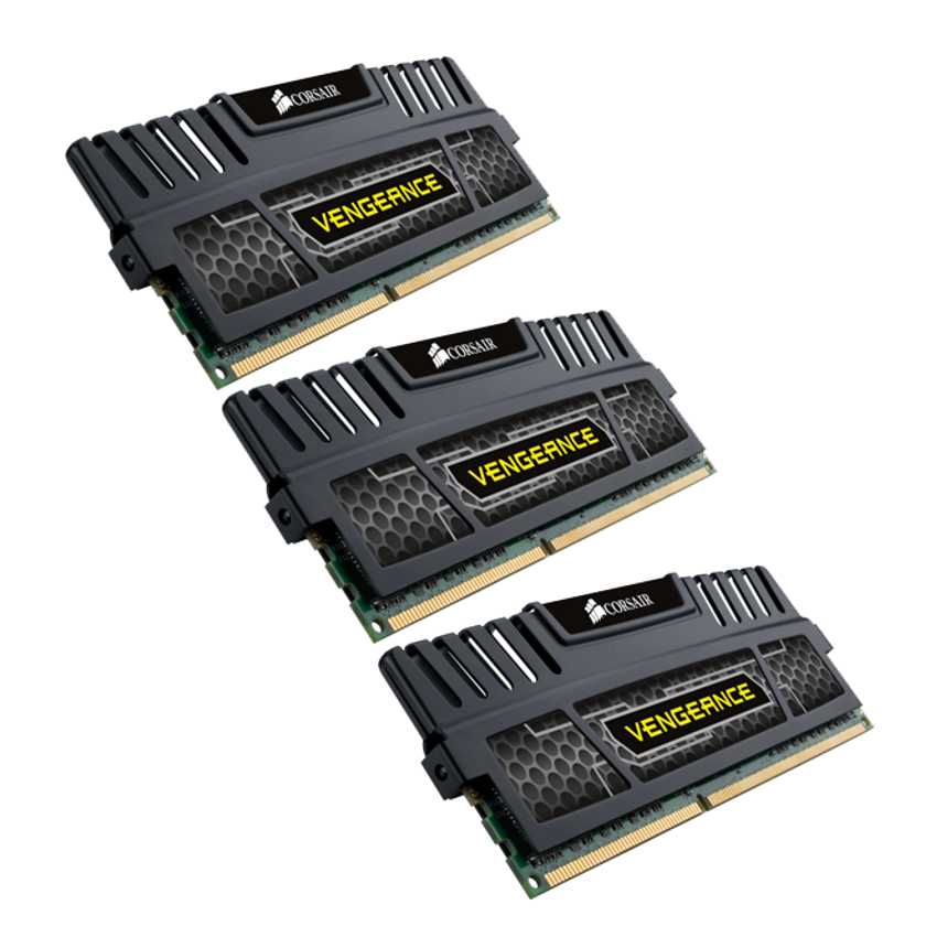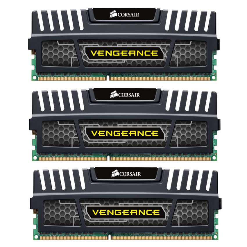 DescripciónLos módulos de memoria DDR3 Corsair Vengeance están especialmente diseñados para los overclockers. Los DIMM Vengeance incorporan memoria RAM seleccionada especialmente por su alto potencial de rendimiento. Los difusores térmicos de aluminio facilitan la disipación del calor y confieren a su equipo de juego el aspecto agresivo que busca. Además, gracias a un precio muy atractivo, la memoria Vengeance le permitirá contar con un holgado presupuesto para ampliar el sistema.Diseño elegante y overclocking excepcional a un precio extraordinario Los módulos de memoria DDR3 Corsair Vengeance están especialmente diseñados para los overclockers. Los DIMM Vengeance incorporan memoria RAM seleccionada especialmente por su alto potencial de rendimiento. Los difusores térmicos de aluminio facilitan la disipación del calor y confieren a su equipo de juego el aspecto agresivo que busca. Además, gracias a un precio muy atractivo, la memoria Vengeance le permitirá contar con un holgado presupuesto para ampliar el sistema.Optimizados para garantizar su compatibilidad con las CPU y placas base más recientes Los módulos de memoria Vengeance están diseñados específicamente para las CPU más recientes. Los módulos Vengeance funcionan a 1,5 V para garantizar la máxima compatibilidad con todos los procesadores Intel® Core? i3, i5 y i7, así como con la segunda generación de procesadores Intel. La gama de memoria DDR3 Vengeance ofrece módulos únicos y kits de dos y tres módulos para satisfacer los requisitos de su placa base, independientemente del número de unidades DIMM.Densidad de última generación para los usuarios más exigentes La mayoría de los módulos DIMM Vengeance incorporan circuitos RAM de dos gigabits. Gracias a la elevada densidad de estos chips, dispondrá de 8 GB de memoria con solo dos módulos DIMM, pudiendo también dotar a su sistema de canal triple de nada menos que 24 GB de memoria para operaciones multitarea de máxima exigencia.Descripción del producto Kit Vengeance de 12 GB de alto rendimiento para sistemas de canal triple, 1600 MHz, 9-9-9-24, 1,5 VPrincipales características - Optimice la capacidad de memoria de su sistema para lograr su máximo rendimiento - Memorias RAM seleccionadas especialmente para el máximo rendimiento en overclocking - Gracias a su VDIMM de 1,5 V, garantizan la compatibilidad con toda la gama de procesadores Intel Core de segunda generación (Sandy Bridge) - Incluye perfil de rendimiento XMP - Compatibilidad garantizada con todas las plataformas Intel de canal triple - Imprescindible diseño agresivo - Precio enormemente atractivo - Fiabilidad y rendimiento de Corsair de prestigio mundialContenido del paquete Tres módulos de memoria de 4 GBRequisitos de sistema Diseñado para su uso en cualquier placa base DDR3 con tres canales de memoriaEspecificacionesMemoria interna: 12 GBTipo de memoria interna: DDR3Velocidad de memoria del reloj: 1600 MHzComponente para: PC/serverForma de factor de memoria: 240-pin DIMMDiseño de memoria (módulos x tamaño): 3 x 4 GBLatencia CAS: 9Voltaje de memoria: 1.5 V