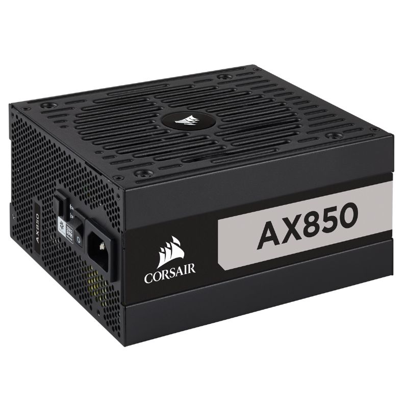 Descripción Corsair AX850. Potencia total: 850 W, Voltaje de entrada AC: 100 - 240 V, Frecuencia de entrada AC: 50/60 Hz. Diámetro de ventilador: 13,5 cm, Número de ventiladores: 1 Ventilador(es). Alimentador de energía para tarjeta madre: 20+4 pin ATX, Longitud del cable de alimentación de la placa base: 61 cm, Longitud del cable de alimentación SATA: 800 mm. Utilizar con: PC, Factor de forma de fuente de alimentación (PSU): ATX, Tecnología de rodamientos: FDB. Color del producto: Negro