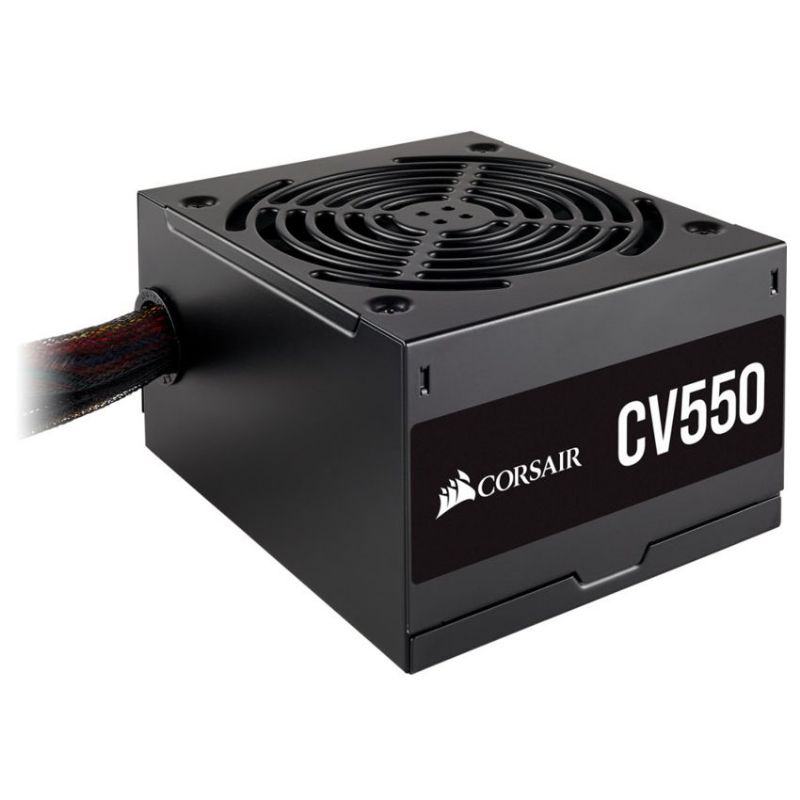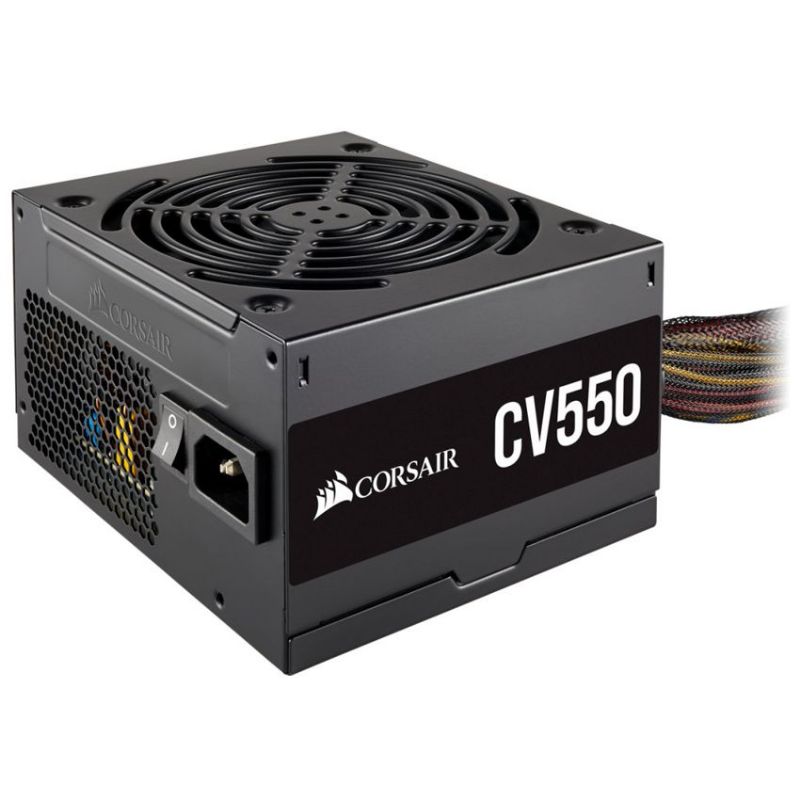 Descripción Corsair CV550. Potencia total: 550 W, Voltaje de entrada AC: 100 - 240 V, Frecuencia de entrada AC: 47 - 63 Hz. Alimentador de energía para tarjeta madre: 20+4 pin ATX, Tipo de cableado: No modular. Utilizar con: PC, Factor de forma de fuente de alimentación (PSU): ATX, Certificación 80 PLUS: 80 PLUS Bronze. Color del producto: Negro, Tipo de enfriamiento: Activo, Diámetro de ventilador: 12 cm. Ancho: 150 mm, Profundidad: 125 mm, Altura: 86 mm