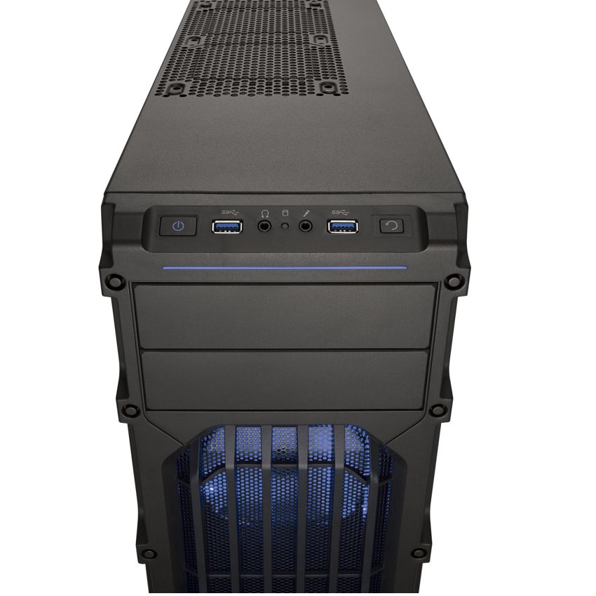 Especificaciones Factor de forma: Midi-Tower Tipo: PC Número de puertos 5.25": 2 Número de puertos 3.5": 3 Formas de factor de tarjeta madre soportadas: ATX, Micro-ATX, Mini-ITX Color del producto: Negro Número de bahías 2.5: 2 Número de bahías internas de 3,5 ": 3 Ventana lateral: Si Adecuado para: Juego Iluminación: Si Iluminación ubicación: Frente Iluminación de color: Naranja Altavoces incorporados: No Número de ranuras de expansión: 7 Altura máxima de la CPU más fresco: 15,7 cm Máxima longitud de la tarjeta de gráficos: 42,6 cm Máxima longitud de PSU: 28,8 cm Fuente de alimentación incluida: No Ubicación de fuente de alimentación: Fondo Cantidad de puertos tipo A USB 3.0 (3.1 Gen 1): 2 Entrada de audio: Si Salida de audio: Si Ventiladores frontales instalados: 1x 120 mm Máximo de ventiladores frontales: 2 Diámetro de ventiladores frontales soportados: 120,140 mm Ventiladores traseros instalados: 1x 120 mm Máximo de ventiladores posteriores: 1 Diámetro de ventiladores traseros soportados: 120 mm Máximos ventiladores superiores: 2 Diámetros de ventiladores superiores soportados: 120 mm Máximos ventiladores inferiores: 1 Diámetro de ventiladores inferiores secundarios soportados: 120 mm Tamaños de disco duro soportados: 2.5,3.5" Número de discos duros soportados: 5 Gestión de cables: Si Botón de restaurar: Si Ancho: 185 mm Profundidad: 445 mm Altura: 440 mm Peso: 5,65 kg Ancho del paquete: 246 mm Profundidad del paquete: 474 mm Altura del paquete: 558 mm Peso del paquete: 6,45 kg