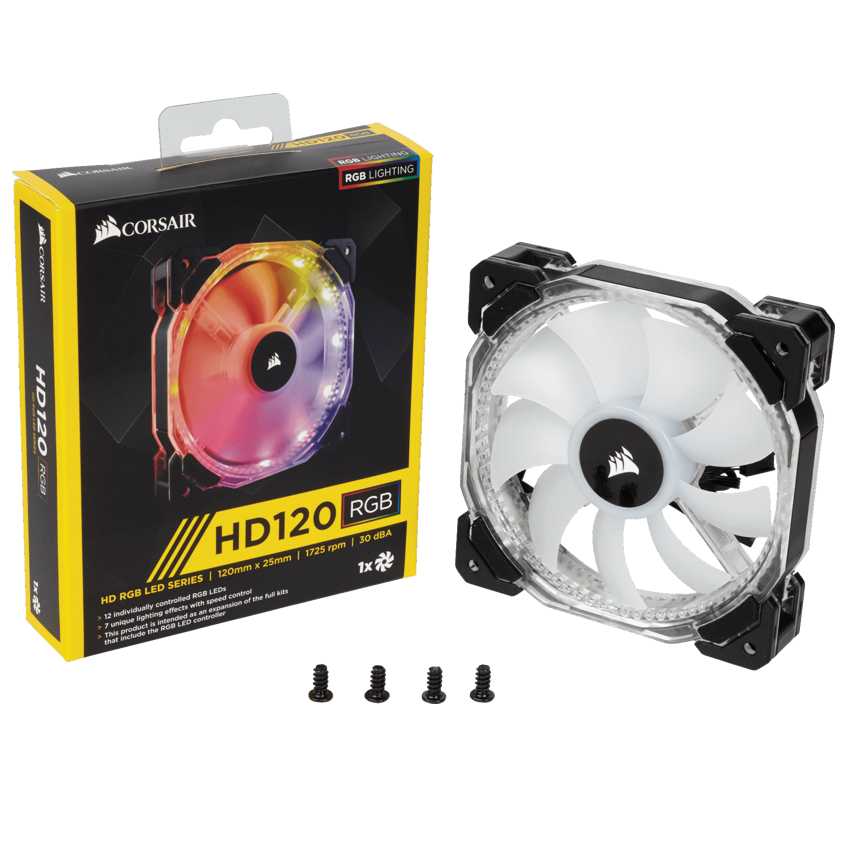 Descripción Corsair HD120. Adecuado para: Carcasa del ordenador, Tipo: Ventilador, Diámetro de ventilador: 12 cm. Color del producto: Negro, Color blanco, Materiales: De plástico, Iluminación: LED. Voltaje: 7 - 13.2