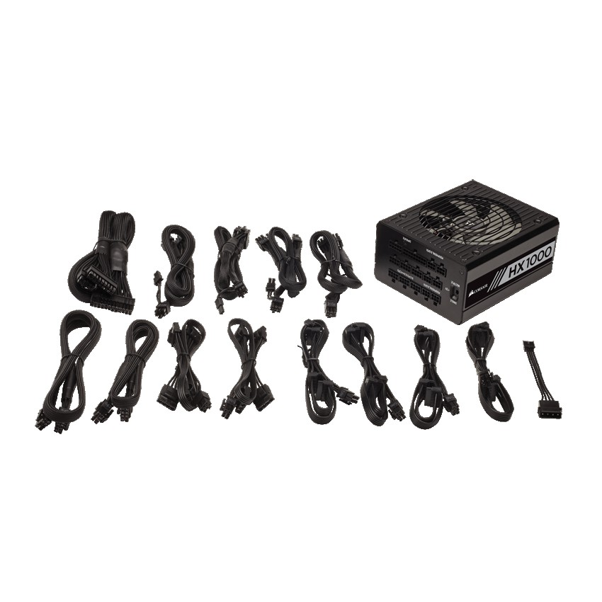 Descripción Corsair HX1000. Potencia nominal: 1000 W, Voltaje de entrada AC: 100 - 240 V, Frecuencia de entrada AC: 47 - 63 Hz. Diámetro de ventilador: 13,5 cm, Ubicación de ventilador: Superior, Tipo de enfriamiento: Activo. Alimentador de energía para tarjeta madre: 20+4 pin ATX, Longitud del cable de alimentación de la placa base: 61 cm, Longitud del cable de alimentación SATA: 450,800 mm. Factor de forma: ATX, Utilizar con: PC. Color del producto: Negro