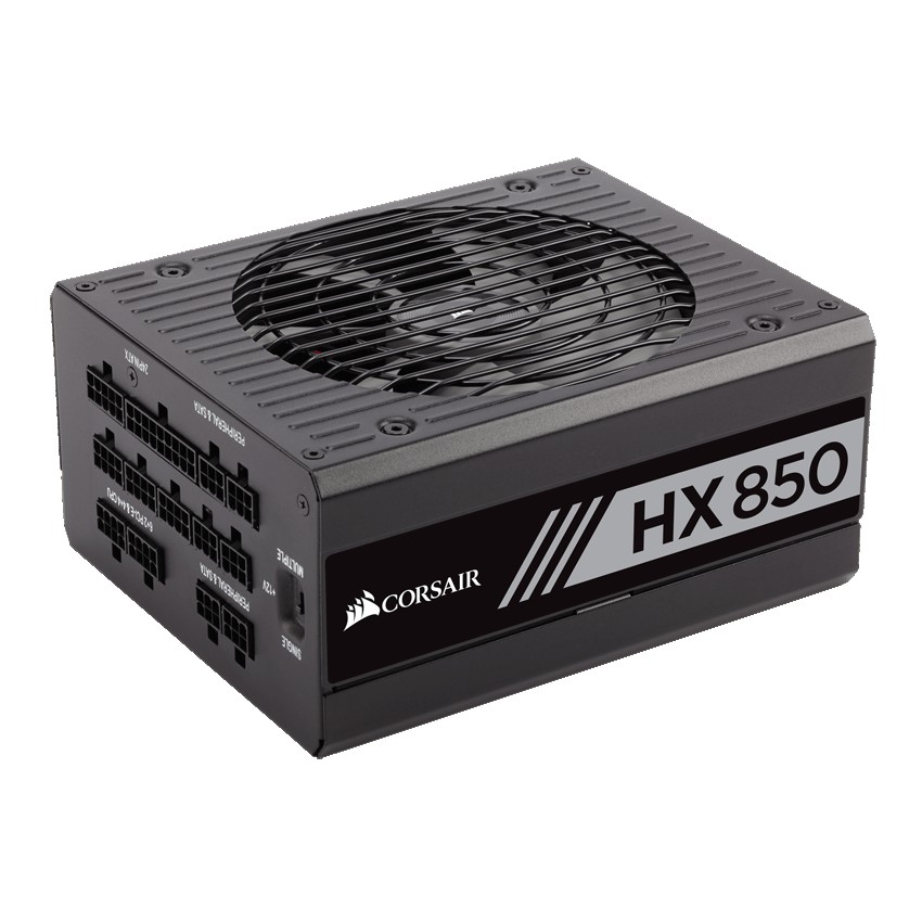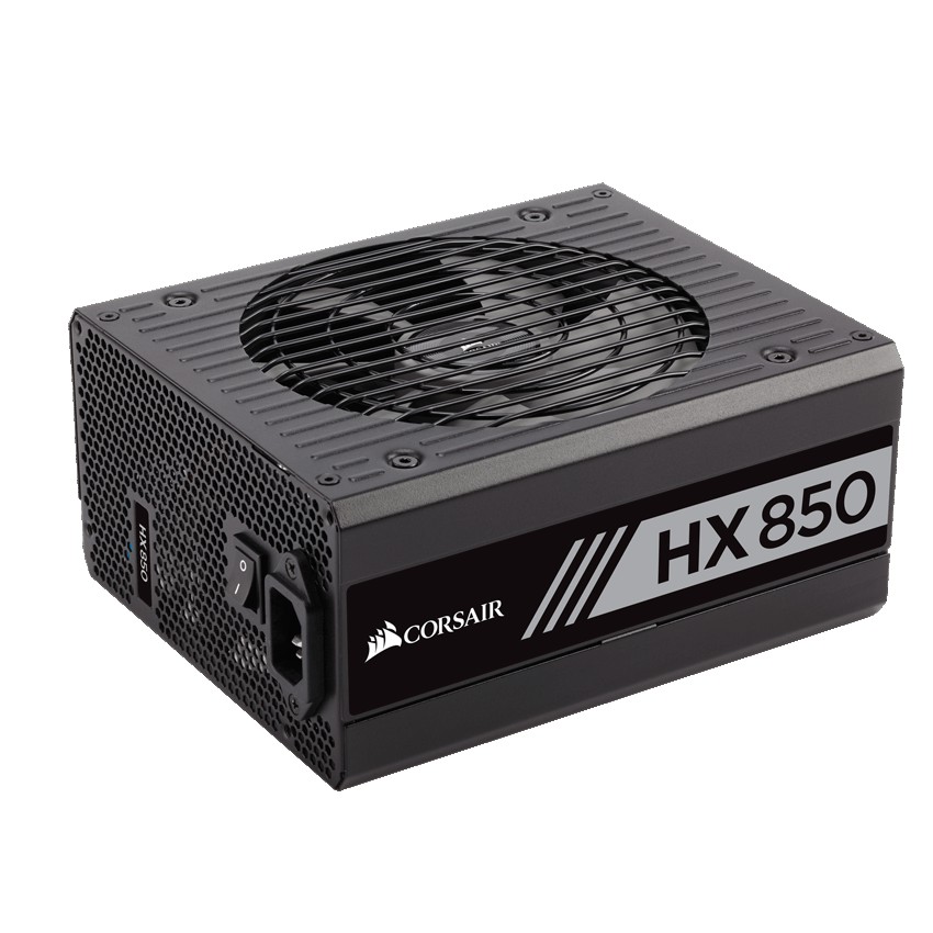 Descripción Corsair HX850. Potencia nominal: 850 W, Voltaje de entrada AC: 100 - 240 V, Frecuencia de entrada AC: 47 - 63 Hz. Diámetro de ventilador: 13,5 cm, Ubicación de ventilador: Superior, Tipo de enfriamiento: Activo. Alimentador de energía para tarjeta madre: 20+4 pin ATX, Longitud del cable de alimentación de la placa base: 61 cm, Longitud del cable de alimentación SATA: 450 mm. Factor de forma: ATX, Utilizar con: PC. Color del producto: Negro