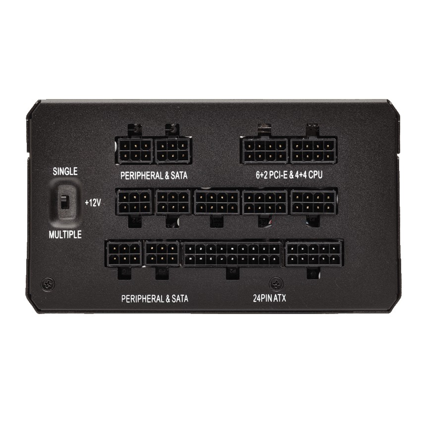 Especificaciones Potencia nominal: 850 W Voltaje de entrada AC: 100 - 240 V Frecuencia de entrada AC: 47 - 63 Hz Corriente de entrada: 12 Potencia combinada (3,3 V): 150 W Potencia combinada (+12 V): 850 W Potencia combinada (+5 V): 150 W Potencia combinada (-12V): 9,6 W Potencia combinada (+5 VSB): 15 W Corriente máxima de salida (+3.3V): 25 A Corriente máxima de salida (+12V): 70,8 A Corriente máxima de salida (+5V): 25 A Corriente máxima de salida (-12V): 0,8 A Corriente máxima de salida (+5Vsb): 3 A Funciones de protección de poder: Over power, Sobrevoltaje, Sobrecalentamiento, Cortocircuito, Bajo voltaje Diámetro de ventilador: 13,5 cm Número de ventiladores: 1 Ubicación de ventilador: Superior Tipo de enfriamiento: Activo Alimentador de energía para tarjeta madre: 20+4 pin ATX Conectores de poder (4 pin) periferales (Molex): 6 Longitud del cable de alimentación de la placa base: 61 cm Número de conectores de energía SATA: 8 Longitud del cable de alimentación SATA: 450 mm Longitud del cable de alimentación periférico (Molex): 550,650,750 mm Conector de energía EPS (8-pin): Si Conectores de poder PCI Express (6 + 2 pin): 6 Longitud del cable de alimentación PCI Express: 67,5 cm Conector de poder floppy: 1 Longitud del cable de la unidad de disquete: 10,1 cm Tipo de cableado: Modular Factor de forma: ATX Utilizar con: PC Versión ATX: 2.4 Versión EPS: 2.92 Color del producto: Negro Ancho: 150 mm Profundidad: 180 mm Altura: 86 mm Peso: 1,95 kg Certificación 80 PLUS: 80 PLUS Platinum Acorde RoHS: Si Certificación: FCC, ICES, CE, UL / CUL, CSA, C-Tick/RCM, TUV, CB, CU, KC Mark, WEEE, RoHS (China), REACH Tipo de embalaje: Caja Manual de usuario: Si Tarjeta de garantía: Si