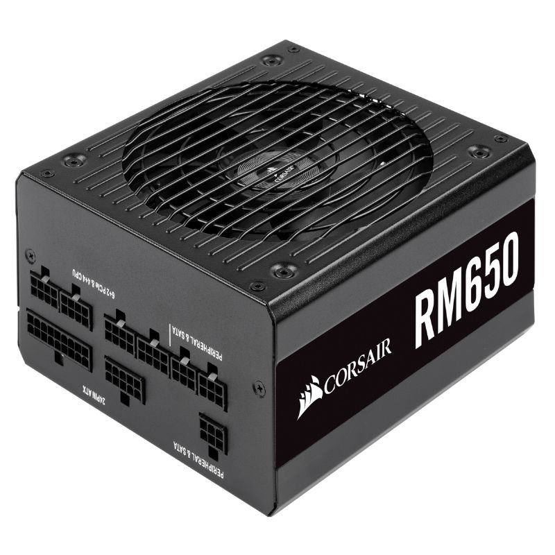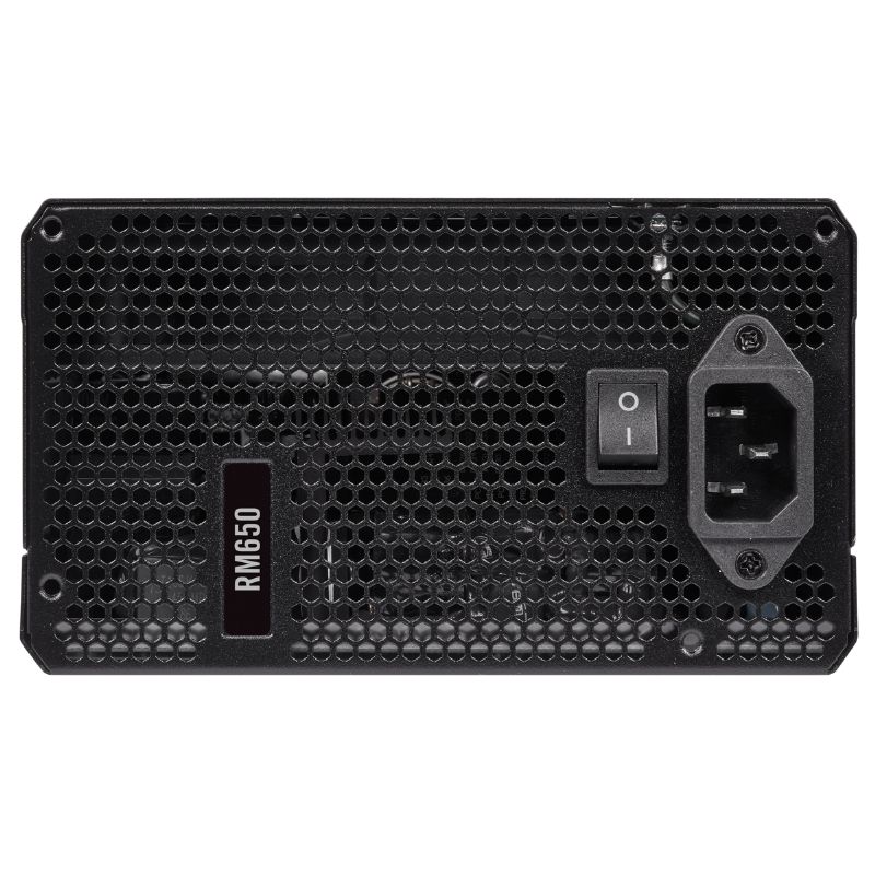 Descripción Corsair RM650. Potencia total: 650 W, Voltaje de entrada AC: 100 - 240 V, Frecuencia de entrada AC: 47 - 63 Hz. Alimentador de energía para tarjeta madre: 20+4 pin ATX, Tipo de cableado: Modular. Utilizar con: PC, Factor de forma de fuente de alimentación (PSU): ATX, Certificación 80 PLUS: 80 PLUS Gold. Color del producto: Negro, Tipo de enfriamiento: Activo, Diámetro de ventilador: 13,5 cm. Ancho: 150 mm, Profundidad: 160 mm, Altura: 86 mm