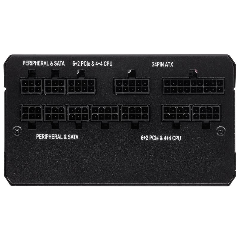 - Compatibilidad con iCUE: No - Modo RPM cero: Sí - Tipo de cable: Bajo perfil, todo negro - Dimensiones: 150mm x 86mm x 160mm - Conector EPS: 2 - Versión EPS12V: v2.92 - Modular: Completamente - Conector PCI-E: 6 - Conector SATA: 10 - Conector PATA: 4 - Compatible con el modo de espera moderno