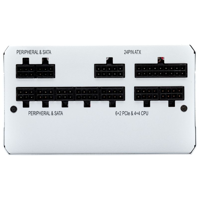 Descripción Corsair RM750x. Potencia total: 750 W. Diámetro de ventilador: 13,5 cm, Número de ventiladores: 1 Ventilador(es), Ubicación de ventilador: Superior. Alimentador de energía para tarjeta madre: 20+4 pin ATX, Tipo de cableado: Modular. Utilizar con: PC, Factor de forma de fuente de alimentación (PSU): ATX, Tecnología de rodamientos: Rifle. Color del producto: Negro, Blanco