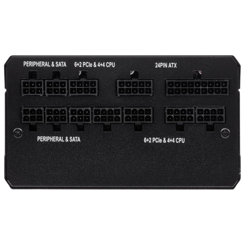 - Multi-GPU ready: Yes - 80 PLUS Efficiency: Gold - PSU Form Factor: ATX - iCUE Compatibility: No - Zero RPM Mode: Yes - Cable Type: Low-Profile, All Black - Dimensions: 150mm x 86mm x 160mm - EPS Connector: 2 - EPS12V Version: v2.92 - Modular: Fully - PCI-E Connector: 6 - SATA Connector: 12 - PATA Connector: 4 - Modern Standby Compatible: Yes