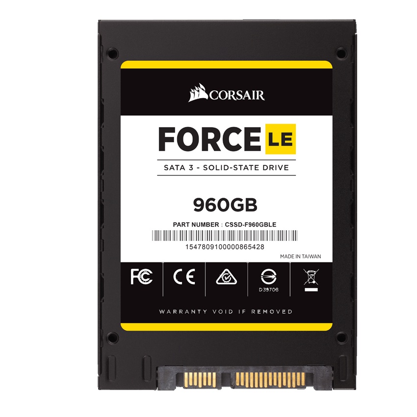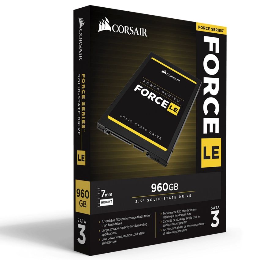 Descripción Corsair Force LE 960 GB. Disco de estado sólido, capacidad: 960 GB, Interfaces de disco de estado sólido: Serial ATA III, Velocidad de lectura: 560 MB/s. Color del producto: Negro