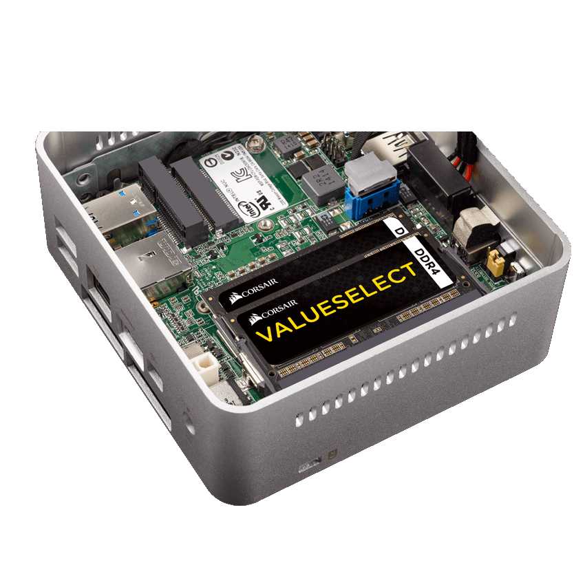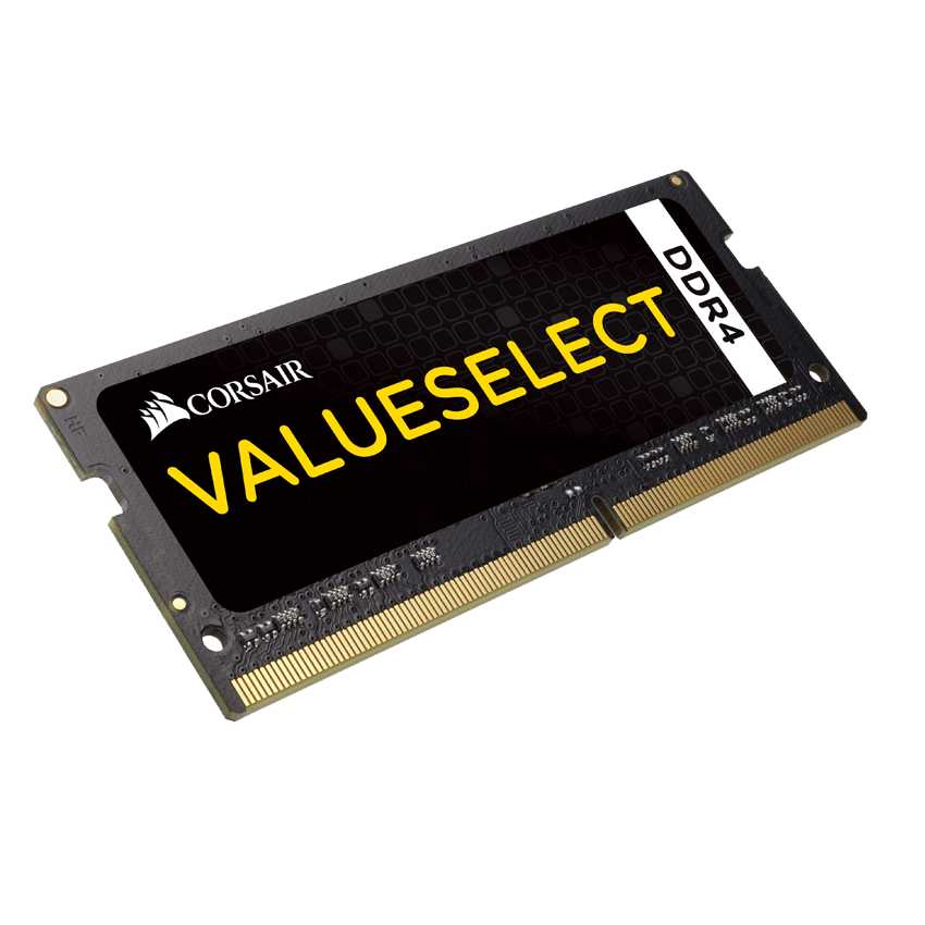 Descripción DDR4 SODIMM rápida y fiable para sistemas de la plataforma Intel Core de 6ª generación Los módulos de memoria Corsair ValueSelect DDR4 SODIMM están pensados para superar los estándares del sector para garantizar la máxima compatibilidad con prácticamente todos los PC Intel de 6ª generación.