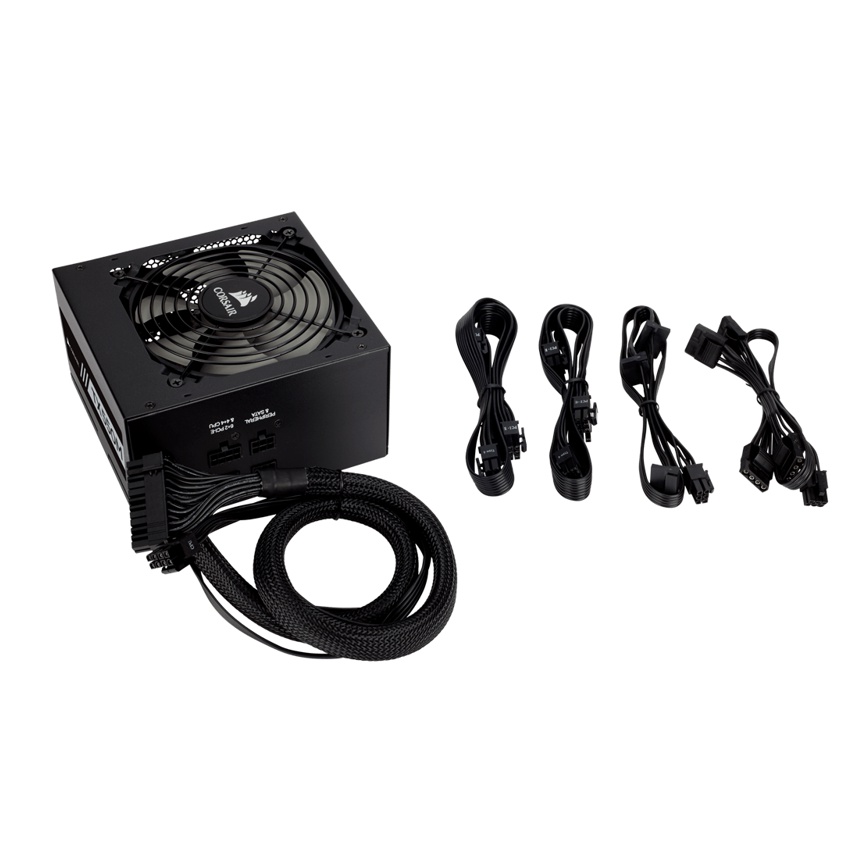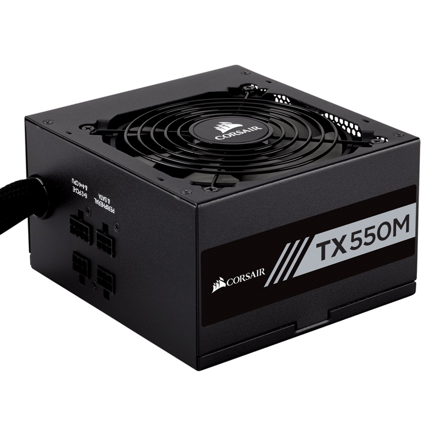 Descripción Corsair TX550M. Potencia nominal: 550 W, Voltaje de entrada AC: 100 - 240 V, Frecuencia de entrada AC: 47 - 63 Hz. Diámetro de ventilador: 12 cm, Ubicación de ventilador: Superior, Tipo de enfriamiento: Activo. Alimentador de energía para tarjeta madre: 20+4 pin ATX, Longitud del cable de alimentación de la placa base: 61 cm, Longitud del cable de alimentación SATA: 500,600 mm. Factor de forma: ATX, Utilizar con: PC, Tecnología de rodamientos: Rifle. Color del producto: Negro