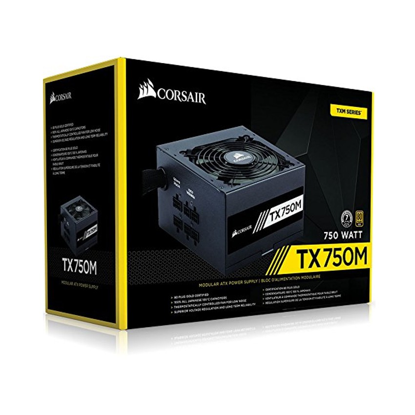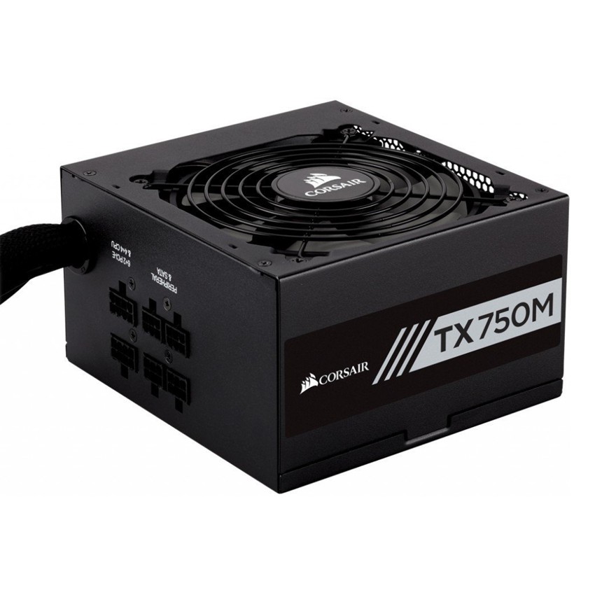 Descripción Corsair TX750M. Voltaje de entrada AC: 100 - 240 V, Frecuencia de entrada AC: 47 - 63 Hz, Corrección del factor de potencia tipo (PFC): Activo. Ubicación de ventilador: Superior, Tipo de enfriamiento: Activo. Alimentador de energía para tarjeta madre: 20+4 pin ATX, Tipo de cableado: Semimondular. Factor de forma: ATX, Utilizar con: PC, Tecnología de rodamientos: Rifle. Color del producto: Negro