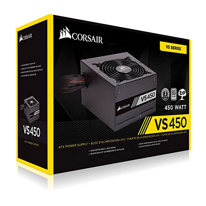 Descripción Corsair CP-9020170-EU. Potencia total: 450 W, Voltaje de entrada AC: 100 - 240, Frecuencia de entrada AC: 47/63. Diámetro de ventilador: 12 cm, Número de ventiladores: 1 Ventilador(es), Ubicación de ventilador: Superior. Alimentador de energía para tarjeta madre: 24-pin ATX, Tipo de cableado: No modular. Utilizar con: PC, Power supply unit (PSU) form factor: ATX, Tiempo medio entre fallos: 100000 h. Color del producto: Negro