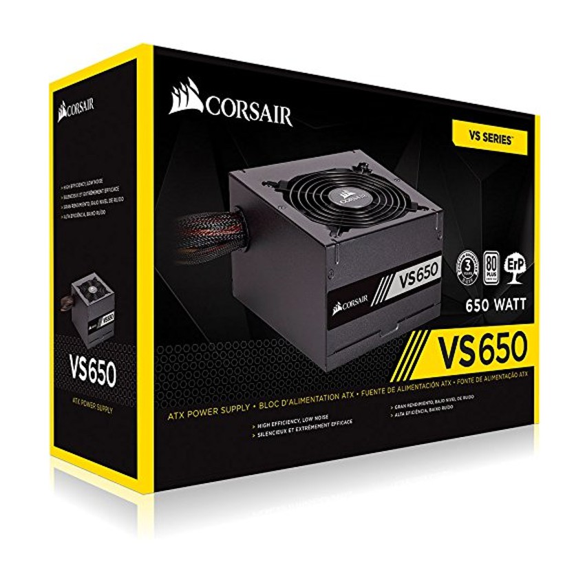 Descripción Corsair CP-9020172-EU. Potencia total: 650 W, Voltaje de entrada AC: 100 - 240, Frecuencia de entrada AC: 47/63. Diámetro de ventilador: 12 cm, Número de ventiladores: 1 Ventilador(es), Ubicación de ventilador: Superior. Alimentador de energía para tarjeta madre: 24-pin ATX, Tipo de cableado: No modular. Utilizar con: PC, Power supply unit (PSU) form factor: ATX, Tiempo medio entre fallos: 100000 h. Color del producto: Negro