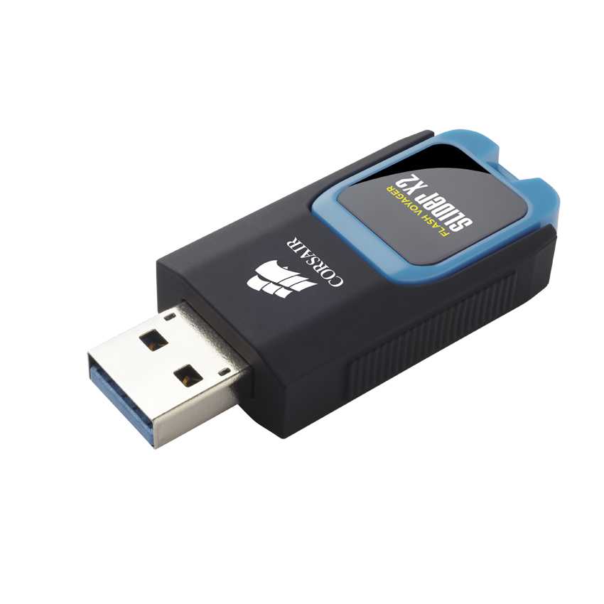 Descripción Corsair Voyager Slider X2 16GB. Capacidad: 16 GB, Versión USB: USB 3.0 (3.1 Gen 1), Conector USB: Type-A. Factor de forma: Slide, Color del producto: Negro, Azul. Peso: 9 g