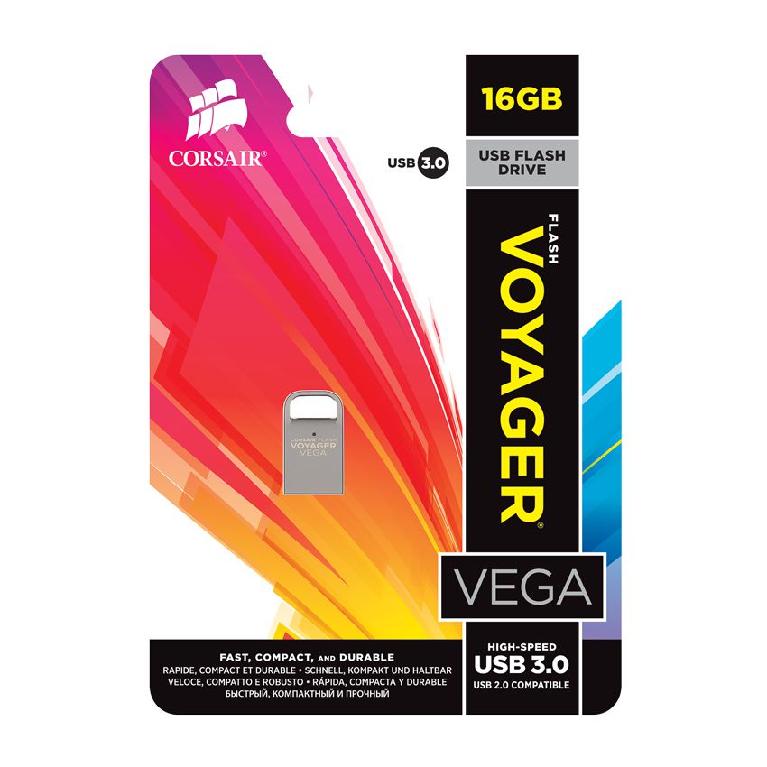 Descripción Corsair Voyager Vega 16GB. Capacidad: 16 GB, Versión USB: USB 3.0 (3.1 Gen 1), Conector USB: Type-A. Factor de forma: Sin tapa, Color del producto: Plata, Materiales: Zinc de acero. Ancho: 12,2 mm, Profundidad: 4,6 mm, Altura: 24 mm