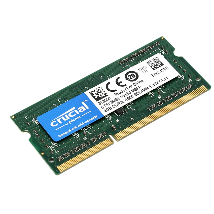 • Form Factor SODIMM • Total Capacity 8GB • Warranty Limited Lifetime • Specs DDR3 PC3-12800 • CL=11 • Unbuffered • NON-ECC • DDR3-1600 • 1.35V • 1024Meg x 64 • • Series Crucial • ECC NON-ECC • Module Qty 1 • Speed 1600 MT/S • Tracer False • Voltage 1.35V • DIMM Type Unbuffered