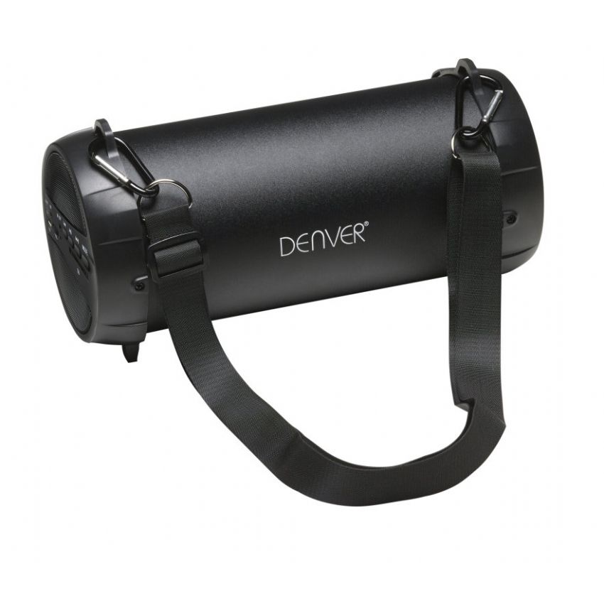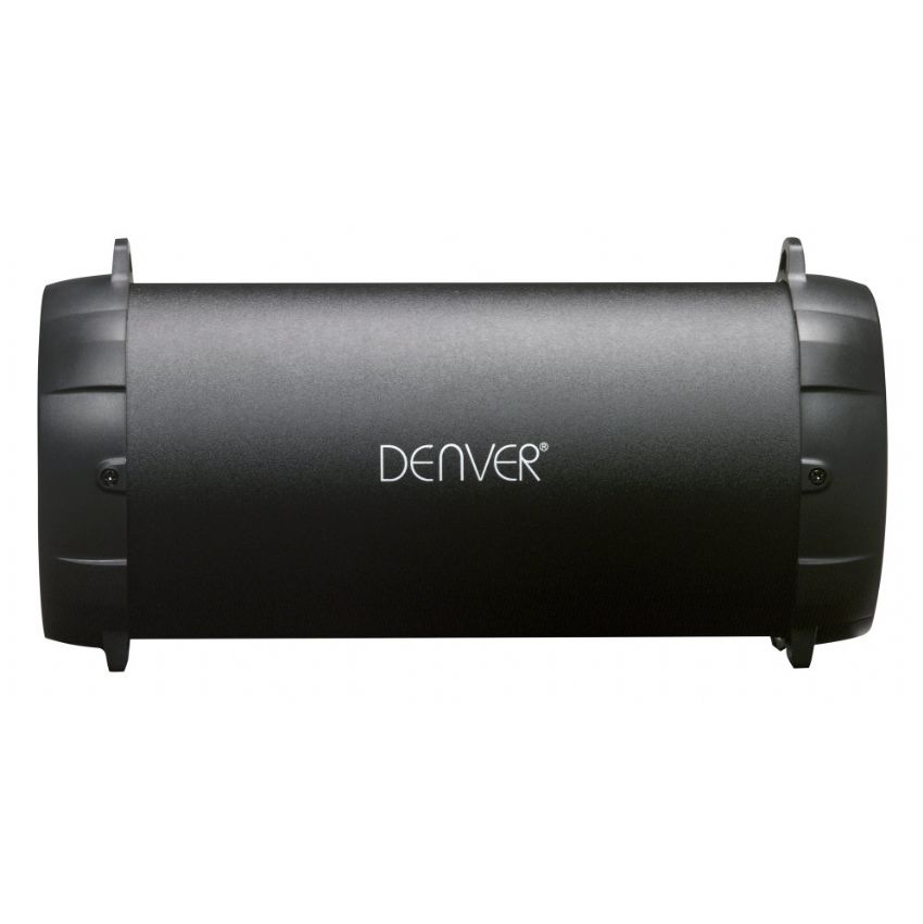 Descripción Denver BTS-53. Potencia estimada RMS: 10 W. Tecnología de conectividad: Inalámbrico y alámbrico, alcance Bluetooth: 10 m. Color del producto: Negro, Diseño: Cilindro, Control de volumen: Digital. Uso recomendado: Universal, Formatos de audio soportados: MP3, Tarjetas de memoria compatibles: SD. Tipo de batería: Batería integrada, Alimentación: Batería, Tecnología de batería: Litio