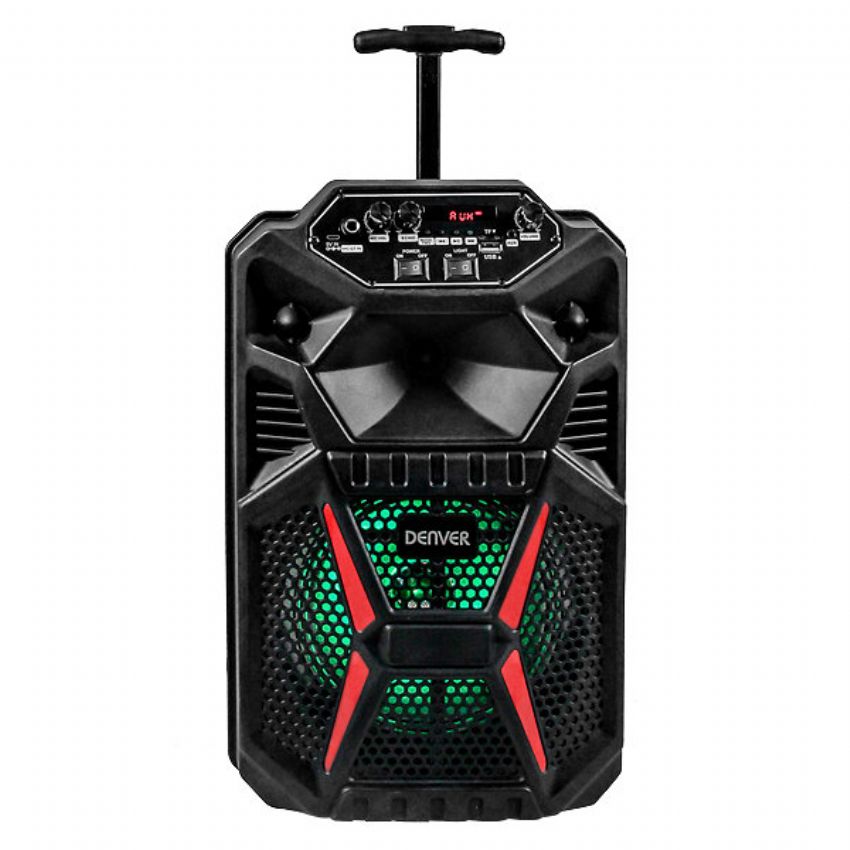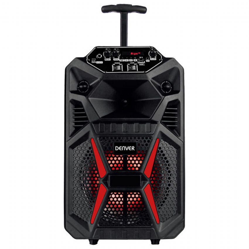 Descripción Denver TSP-120. Ubicación de altavoz: Piso, Color del producto: Negro. Potencia estimada RMS: 8 W. Alimentación: Corriente alterna, Batería, Voltaje de entrada AC: 230 V, Capacidad de la batería: 2,2 Ah. Ancho: 265 mm, Profundidad: 210 mm, Altura: 430 mm