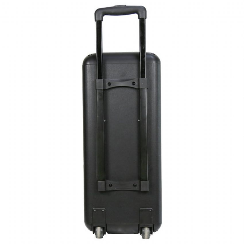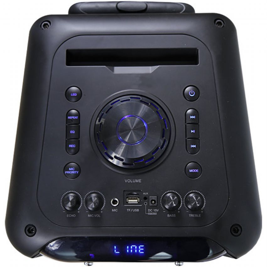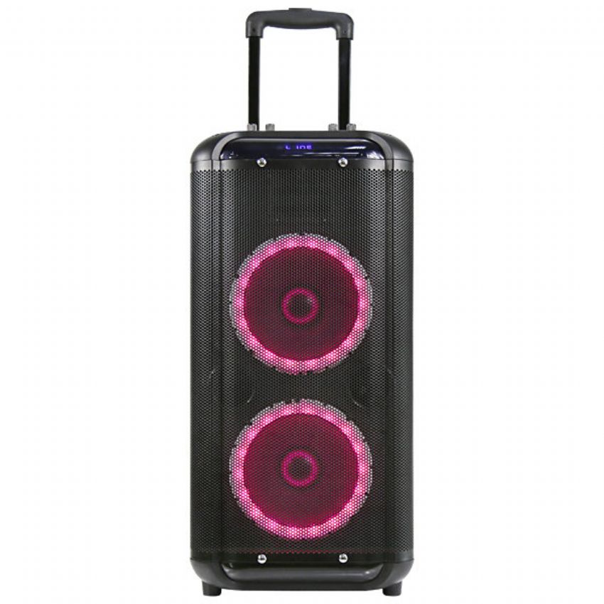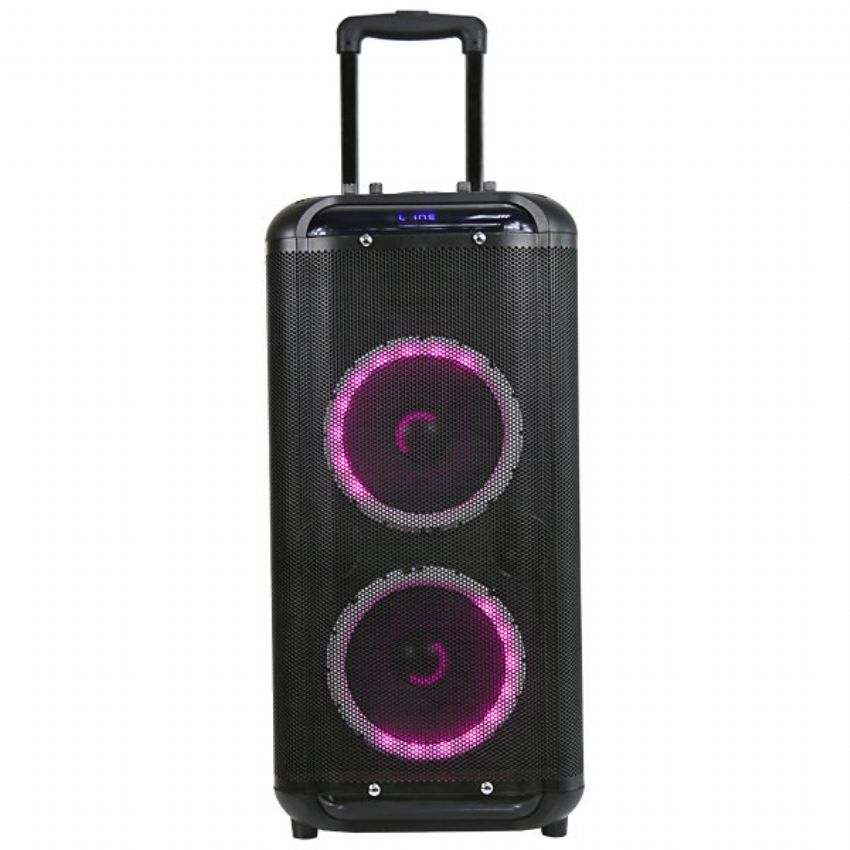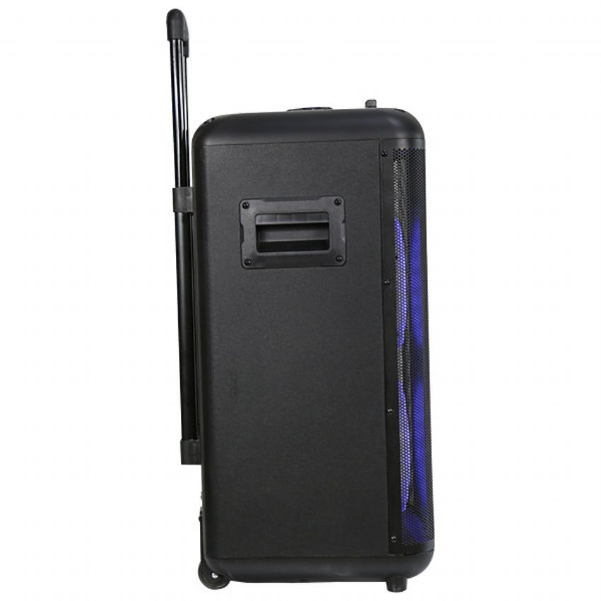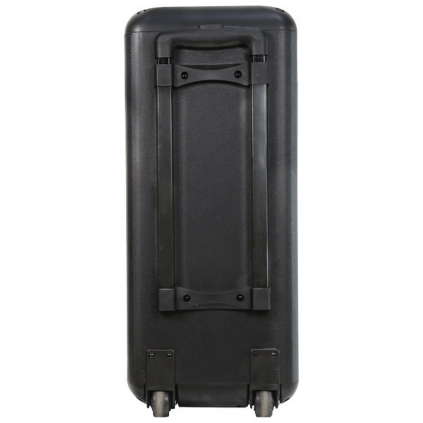Especificaciones Características Adecuado para uso en exteriores Si Amplificador integrado Si Asa de transporte Si Bluetooth Si Color del producto Negro Tipo de control Botones, Giratorio Ubicación de altavoz Piso Audio Potencia estimada RMS 30 W Peso y dimensiones Altura 780 mm Altura del paquete 870 mm Ancho 330 mm Ancho del paquete 385 mm Diámetro del tweeter (imperial) 7,62 cm (3") Diámetro del woofer (imperial) 25,4 cm (10") Peso del paquete 14,6 kg Profundidad 350 mm Profundidad del paquete 385 mm Contenido del embalaje Cantidad 1 Micrófono incluido Si Control de energía Voltaje de entrada AC 100 - 240 V Alimentación Corriente alterna, Batería Capacidad de la batería 1,8 Ah Voltaje de la pila 7,4 V Puertos e Interfaces Cantidad de puertos USB 2.0 tipo A 1 Puertos de entrada AUX 1