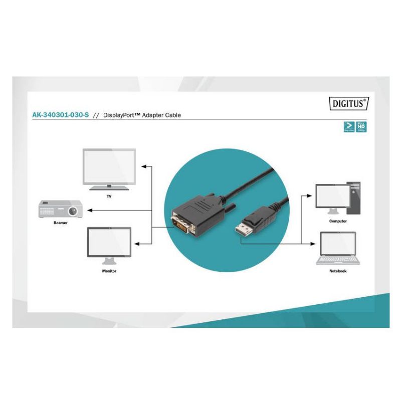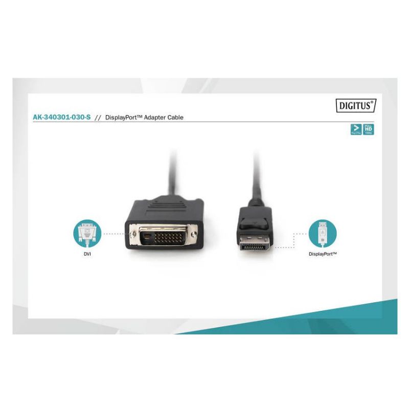 Descripción ASSMANN Electronic AK-340301-030-S. Longitud de cable: 3 m, Conector 1: DisplayPort, Conector 2: DVI-D