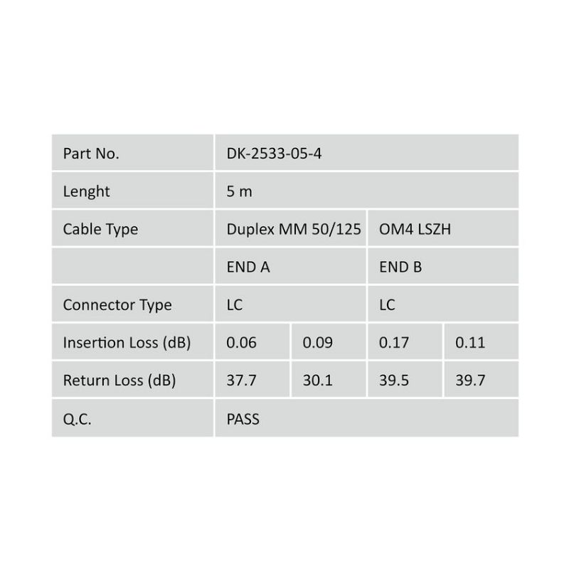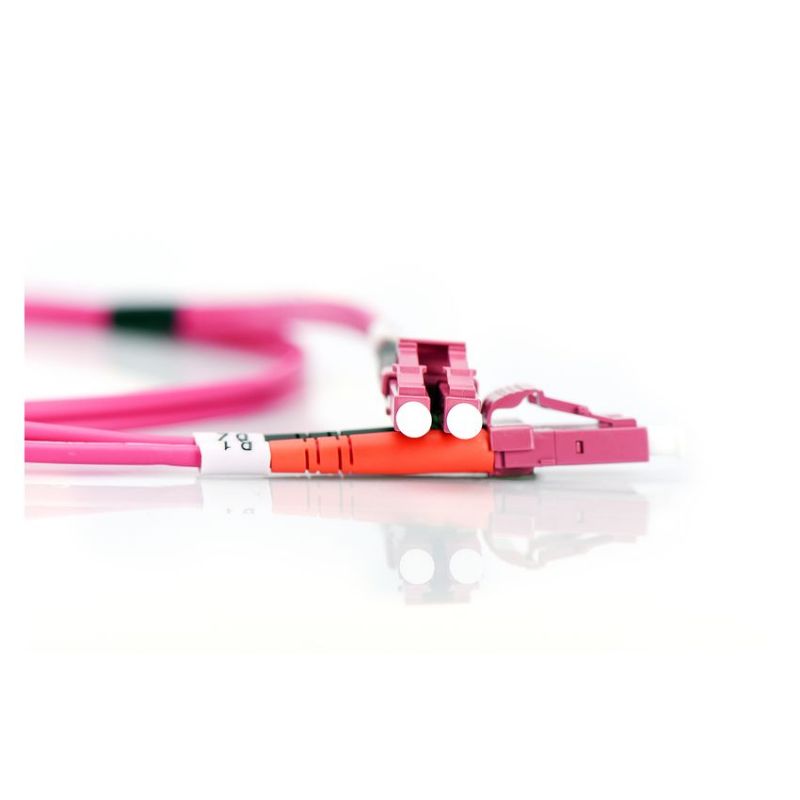 Especificaciones Peso y dimensiones Diámetro de cable 3 mm Características Conector 1 LC Conector 2 LC Bidireccional completo (Full duplex) Si Color del cable Rosa Diámetro de núcleo 50 µm Diámetro de la cubierta 125 µm Estructura de modo de fibra Multimodo Género del conector Macho/Macho Longitud de cable 5 m Material de chaqueta Libre de halógenos (LSZH)
