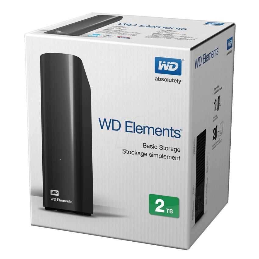 Descripción Western Digital WD Elements, 2TB. Capacidad de disco duro: 2000 GB, Interfaz del disco duro: USB 3.0, Tipo de dispositivo: HDD. Tecnología de conectividad: Alámbrico, Versión USB: 3.0, Velocidad de transferencia de datos: 5000 Mbit/s. Voltaje de entrada: 100-240V, Frecuencia de entrada: 50/60 Hz. Ranura para cable de seguridad: Kensington. Color del producto: Negro, Certificación: RoHS