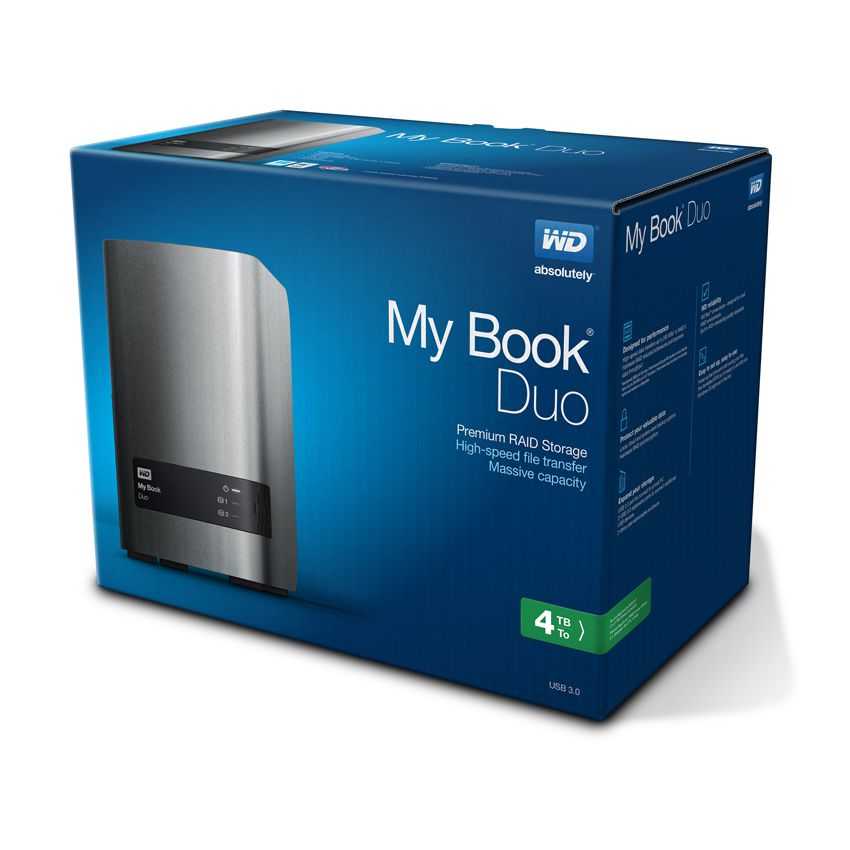 Descripción Western Digital My Book Duo 4TB. Capacidad de disco duro: 4000 GB, Interfaz del disco duro: USB 3.0, Tipo de dispositivo: Unidad de disco duro. Tecnología de conectividad: Alámbrico, Versión USB: 3.0, Velocidad de transferencia de datos: 5000 Mbit/s. Voltaje de entrada: 100-240V, Frecuencia de entrada: 47 - 63 Hz. Algoritmos de seguridad soportados: 256-bit AES. Color del producto: Plata