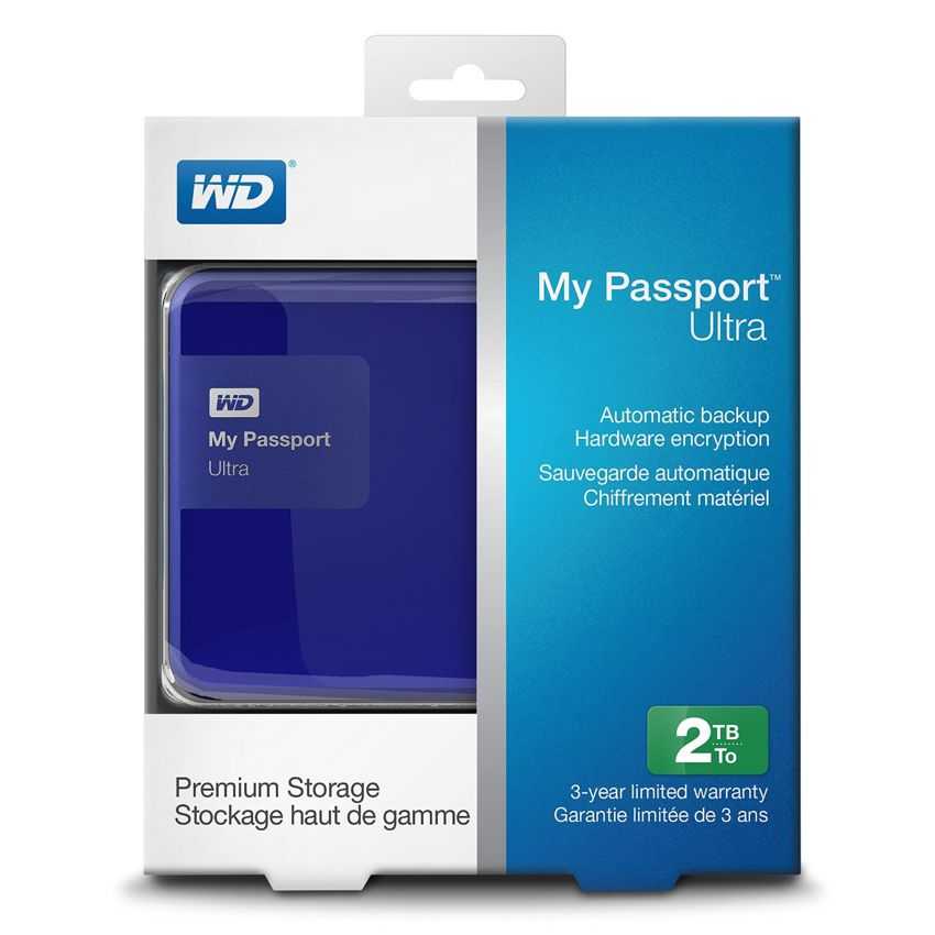 Descripción Western Digital My Passport Ultra 2TB. Capacidad de disco duro: 2000 GB, Interfaz del disco duro: USB 3.0, Tipo de dispositivo: Unidad de disco duro. Tecnología de conectividad: Alámbrico, Velocidad de transferencia de datos: 5000 Mbit/s, Tasa de transferencia de datos USB: 480, 5000 Mbit/s. Color del producto: Azul. Ancho: 8,16 cm, Profundidad: 2,096 cm, Altura: 11 cm. Cables incluidos: USB