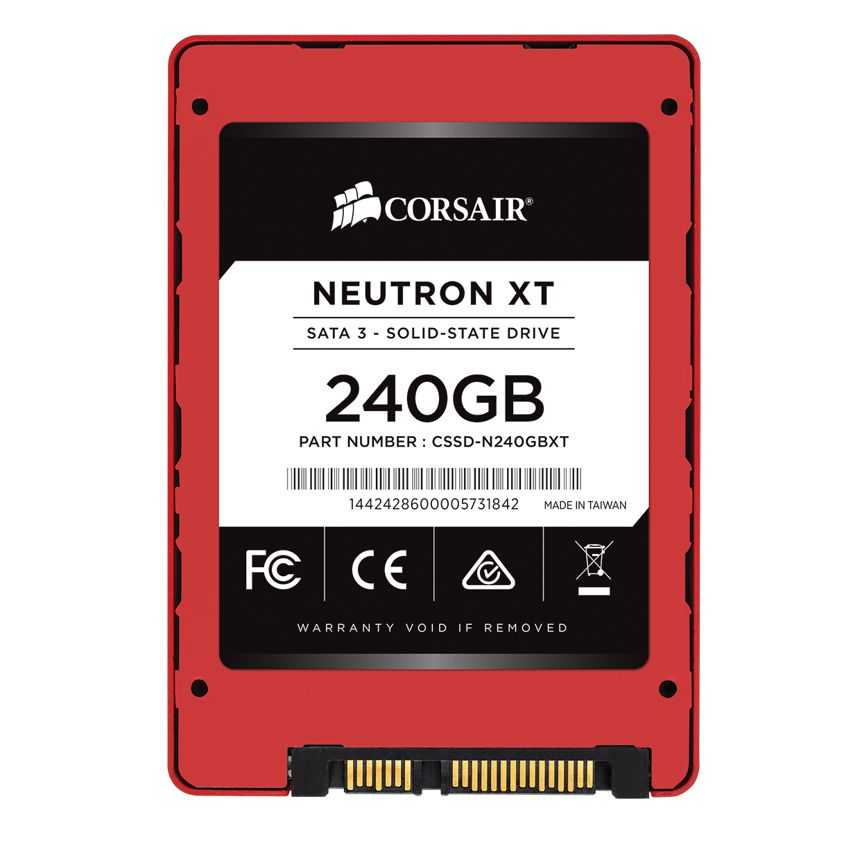 Descripción Corsair Neutron XT. Disco de estado sólido, capacidad: 240 GB, Interfaces de disco de estado sólido: Serial ATA III, Tipo de memoria: MLC. Tamaño: 6,35 cm (2.5"), Color del producto: Negro, Rojo