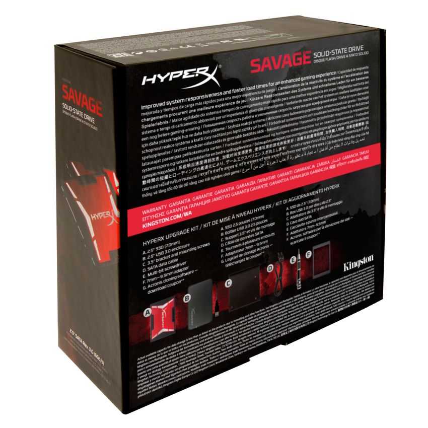 Descripción La unidad de estado sólido HyperX® Savage ofrece un rendimiento extremo para usuarios extremos. Es la unidad SSD basada en SATA más rápida de HyperX y funciona con un controlador Phison S10 de 8 canales y cuatro núcleos. Ofrece velocidades increíbles de hasta 560 MB/s de lectura y 530 MB/s de escritura, con operaciones de E/S de hasta 100 k/89 k. El resultado es un sistema multitarea con una gran capacidad de respuesta y en general más rápido, que mantiene el rendimiento incluso aunque la unidad se llene. Gracias a su perfil bajo y a su delgado factor de forma de 7 mm, la unidad SSD HyperX Savage puede utilizarse en la mayoría de portátiles, ordenadores de sobremesa y montajes de HTPC. - Funciona con un controlador Phison con rendimiento SATA Rev 3.0 (6 Gb/s) - Velocidades de hasta 560 MB/s de lectura y 530 MB/s de escritura - El kit incluye una carcasa externa USB 3.0 para una velocidad de transferencia de datos ultrarrápida, incluso con un disco duro.