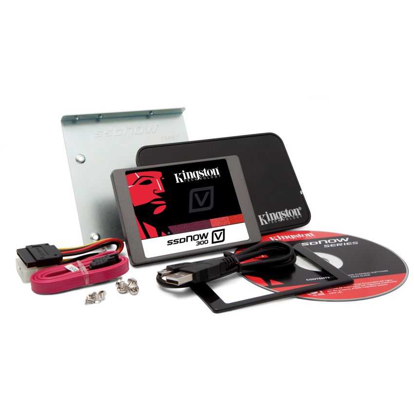 Descripción La unidad de estado sólido SSDNow V300 de Kingston® le permite revitalizar su ordenador de forma económica a la vez que mejora su rendimiento y su capacidad de respuesta. Es 10 veces más rápida que un disco duro de 7200 RPM, además de ser más fiable, resistente y a prueba de impactos, y no tiene piezas móviles. Cuenta con un controlador LSI® SandForce® personalizado para Kingston y componentes de la mejor calidad que son asequibles para los que compran por primera vez una SSD. SSDNow V300 está disponible en kits provistos de todos los accesorios necesarios para agilizar la transición a los últimos avances tecnológicos, a un coste inferior al de un sistema nuevo. Para mayor tranquilidad, la memoria está respaldada por tres años de garantía, soporte técnico gratuito y la legendaria fiabilidad de Kingston.