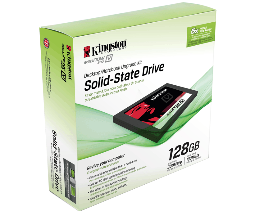 Más rápido, más fiable y de mayor duración, el modelo SSDNow V200 resulta idóneo tanto para usuarios domésticos como para pequeñas empresas, y está respaldado por una garantía de tres años de duración, asistencia técnica continua (24 horas al día, 7 días a la semana) y la legendaria fiabilidad de Kingston.