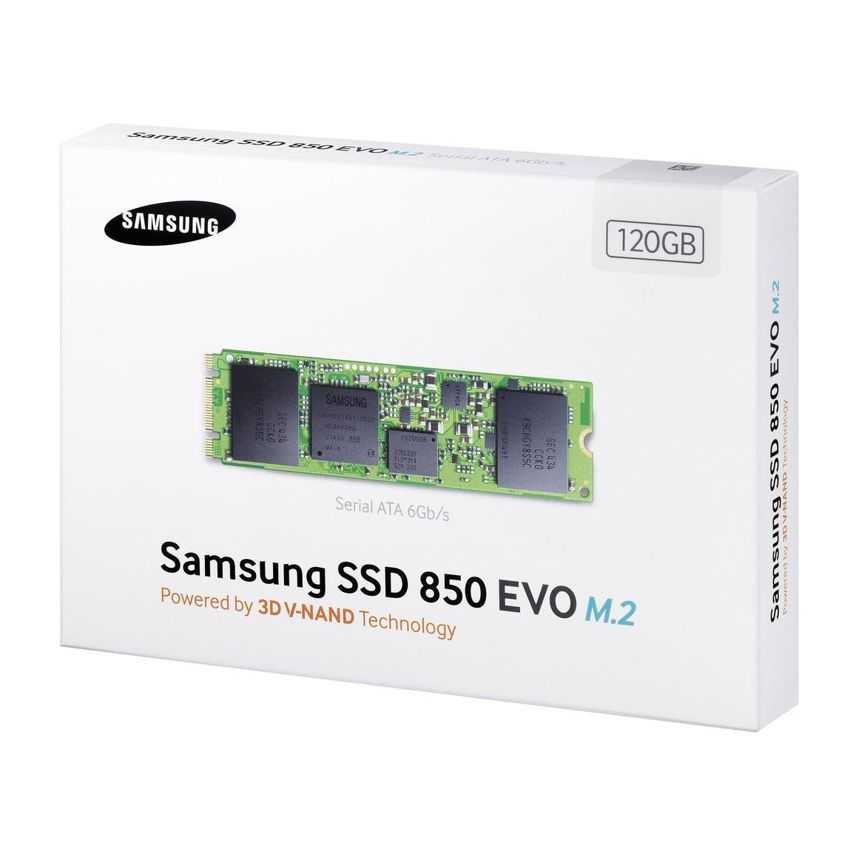 Descripción Samsung 850 EVO M.2 120GB. Disco de estado sólido, capacidad: 120 GB, Interfaces de disco de estado sólido: M.2, Velocidad de lectura: 540 MB/s. Voltaje de operación: 5 V. Ancho: 8,03 cm, Profundidad: 1,52 cm, Altura: 2,21 cm