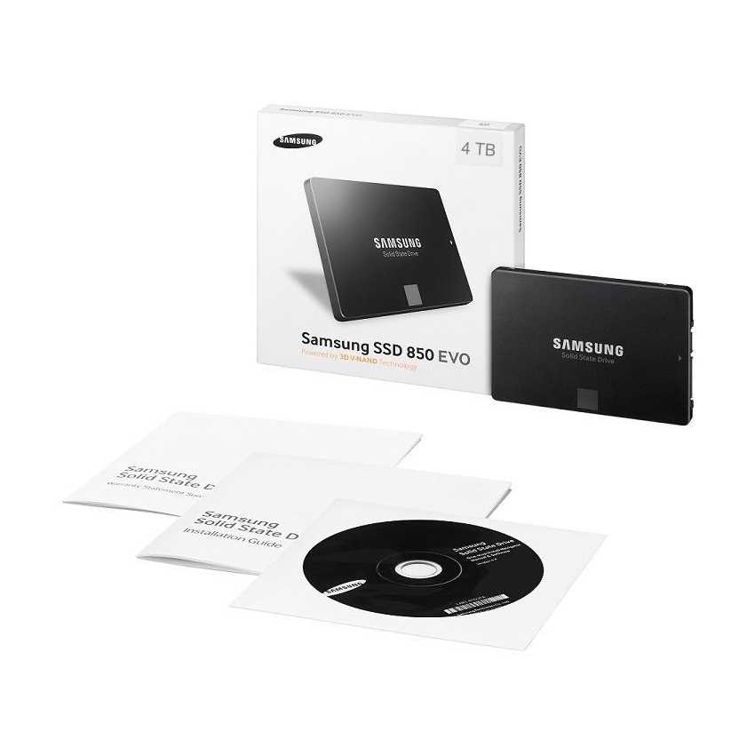 Descripción Samsung 4TB 850EVO. Disco de estado sólido, capacidad: 4000 GB, Interfaces de disco de estado sólido: Serial ATA III, Velocidad de lectura: 540 MB/s. Factor de forma de disco SSD: 2.5", Color del producto: Negro. Consumo de energía (promedio): 4,7 W, Consumo de energía (max): 7,2 W. Ancho: 10 cm, Profundidad: 6,8 mm, Altura: 6,99 cm