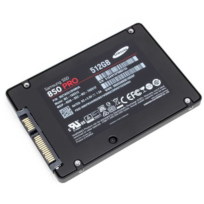 Descripción Samsung 512GB 850 PRO. Disco de estado sólido, capacidad: 512 GB, Interfaces de disco de estado sólido: Serial ATA III, Velocidad de lectura: 550 MB/s. Tamaño: 6,35 cm (2.5"). Consumo de energía (lectura): 3,3W, Consumo de energía (espera): 0,4W. Ancho: 10 cm, Profundidad: 6,8 mm (0.268"), Altura: 6,985 cm. Rango de temperatura de funcionamiento: 32 - 158 °F
