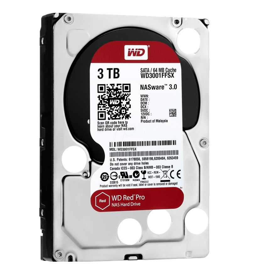 Descripción Western Digital Red Pro. Interfaz del disco duro: Serial ATA III, Capacidad de disco duro: 3000 GB, Tamaño de disco duro: 8,89 cm (3.5"). Consumo de energía (inactivo): 0,6W, Consumo de energía (ahorro): 0,6W, Consumo de energía (lectura): 8,6W. Ancho: 10,16 cm, Altura: 2,61 cm, Profundidad: 14,7 cm. Emisiones de presión acústica: 34 Db