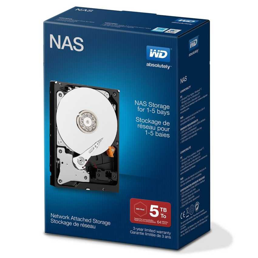 Descripción Western Digital WD NAS 5TB. Interfaz del disco duro: Serial ATA III, Capacidad de disco duro: 5000 GB, Tamaño de disco duro: 8,89 cm (3.5"). Ancho: 10,2 cm, Altura: 2,6 cm, Profundidad: 14,7 cm