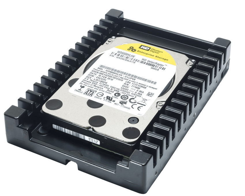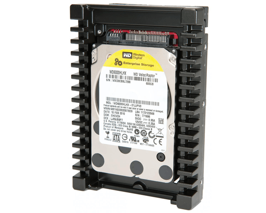 Velociraptor, 600GB, SATA 6Gb/s, 32MB Cache, 10000 RPM Los discos duros WD VelociRaptor ofrecen máxima velocidad y confiabilidad para los sistemas, estaciones de trabajo y servidores de baja gama de los entusiastas del desempeño. Con una soberbia combinación de diseño de 10.000 RPM de velocidad de rotación, interfaz SATA 6 Gb/s y caché de 32 MB, estas unidades son una verdadera evolución del desempeño.Características del productoVelocidad extraordinaria La interfaz SATA de 6 Gb/s y su caché de 32 MB perfeccionan a la unidad de próxima generación WD VelociRaptor de 10.000 RPM, haciéndola hasta un 15% más rápida que la generación anterior galardonada.Capacidad monstruosa Las unidades WD VelociRaptor SATA están disponibles en capacidades de hasta 600 GB, el doble de la capacidad de la generación anterior.Sólida confiabilidad Diseñado y fabricado con estándares de clase empresarial de misión crítica para ofrecer confiabilidad empresarial en ambientes de ciclo de trabajo pesado. Con 1.4 millones de horas MTBF, estas unidades ofrecen la mayor confiabilidad disponible en unidades SATA de alta capacidad.Operación ultra fresca Consume menos energía en inactividad y, en actividad, una energía similar a la de la generación anterior de WD VelociRaptor, a la vez que ofrece el doble de capacidad y más alto desempeño.Marco de montaje IcePack El VelociRaptor de 2.5 pulgadas está montado en un marco de clase empresarial de 3.5 pulgadas, listo para montarse en bastidor y con un disipador de calor integrado, que mantiene fresca a esta poderosa y pequeña unidad de disco cuando se instala en un chasis de escritorio de alto rendimiento.Rotary Acceleration Feed Forward (RAFF?) Optimiza el funcionamiento y el rendimiento cuando las unidades de disco se utilizan en sistemas de múltiples unidades, sujetos a vibración.Tecnología de carga de rampa NoTouch El cabezal de grabación nunca toca el disco, con lo que se logra un desgaste significativamente menor del cabezal y del medio de grabación, así como una mejor protección de la unidad cuando está en tránsito.Ambientalmente consciente Además de cumplir con la directiva RoHS, esta generación de WD VelociRaptor cuenta además con un diseño libre de halógeno.Ideal para Sistemas, estaciones de trabajo y servidores de baja gama de los entusiastas del desempeño.Compatibilidad Windows 7/Vista/XP/2000, servidores Windows, Linux, y Mac OS.