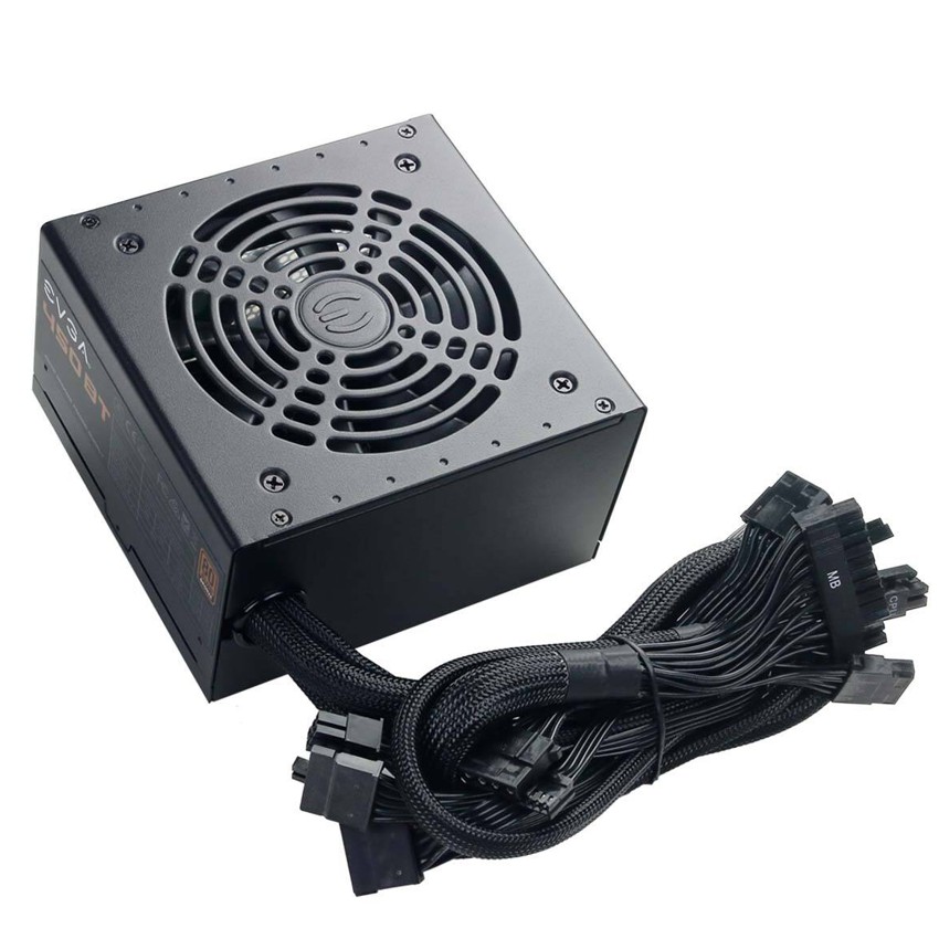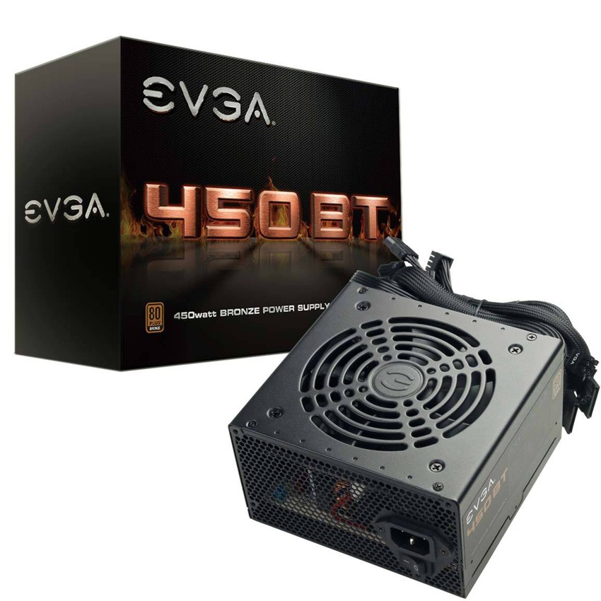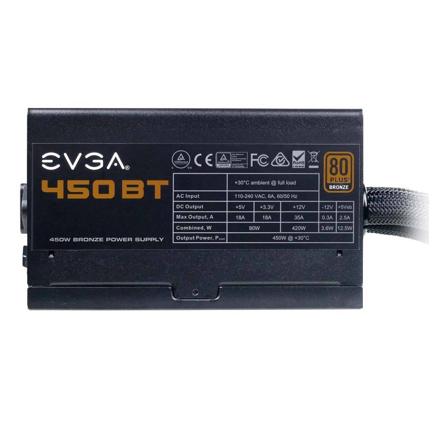 Descripción EVGA 100-BT-0450-K2. Potencia total: 450 W, Voltaje de entrada AC: 100 - 240, Frecuencia de entrada AC: 50 - 60. Diámetro de ventilador: 12 cm, Número de ventiladores: 1 Ventilador(es), Ubicación de ventilador: Superior. Alimentador de energía para tarjeta madre: 24-pin ATX, Longitud del cable de alimentación SATA: 450,570 mm, Longitud del cable de alimentación periférico (Molex): 450,570,690,810 mm. Utilizar con: PC, Factor de forma de fuente de alimentación (PSU): ATX. Color del producto: Negro