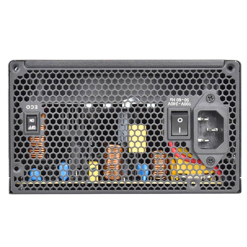 Especificaciones Potencia total: 550 W Voltaje de entrada AC: 100 - 240 Frecuencia de entrada AC: 50 - 60 Potencia combinada (3,3 V): 110 W Potencia combinada (+12 V): 549,6 W Potencia combinada (+5 V): 110 W Potencia combinada (-12V): 6 W Potencia combinada (+5 VSB): 15 W Corriente máxima de salida (+3.3V): 20 A Corriente máxima de salida (+12V): 45,8 A Corriente máxima de salida (+5V): 20 A Corriente máxima de salida (-12V): 0,5 A Corriente máxima de salida (+5Vsb): 3 A Eficiencia: 85% Funciones de protección de poder: Sobreintensidad, Sobretensión, Sobrevoltaje, Sobrecalentamiento, Cortocircuito, Bajo voltaje Diámetro de ventilador: 13 cm Número de ventiladores: 1 Ventilador(es) Ubicación de ventilador: Superior Tipo de enfriamiento: Activo Alimentador de energía para tarjeta madre: 24-pin ATX Conectores de poder (4 pin) periferales (Molex): 3 Longitud del cable de alimentación de la placa base: 60 cm Número de conectores de energía SATA: 6 Longitud del cable de alimentación SATA: 700,500,600 mm Longitud del cable de alimentación periférico (Molex): 700,500,600 mm Conectores de poder PCI Express (6 + 2 pin): 2 CPU conector de alimentación (4 +4 pines): Si Longitud del cable de alimentación CPU: 60 cm Conector de poder floppy: 1 Tipo de cableado: Modular Utilizar con: PC Factor de forma de fuente de alimentación (PSU): ATX Nivel de ruido: 35 dB Nivel de ruido (modo de carga completa, 100%): 35 dB Tiempo medio entre fallos: 100000 h Color del producto: Gris Intervalo de temperatura operativa: 0 - 40 °C Profundidad: 150 mm Altura: 85 mm Certificación 80 PLUS: 80 PLUS Bronze Acorde RoHS: Si Certificación: TUV, CB, CE, FCC, RCM, cTUVus, WEEE