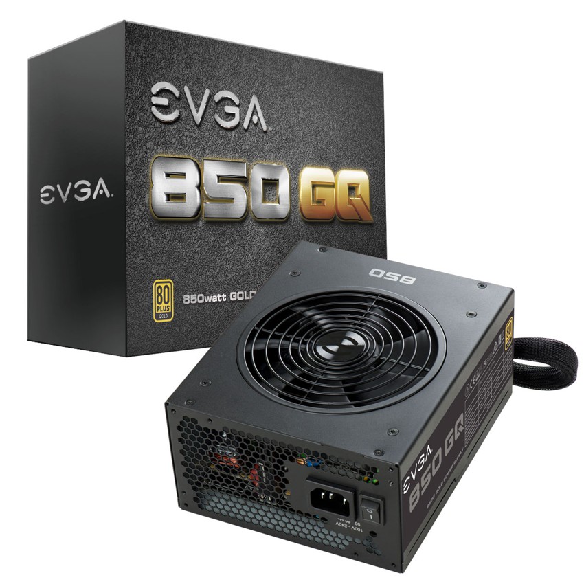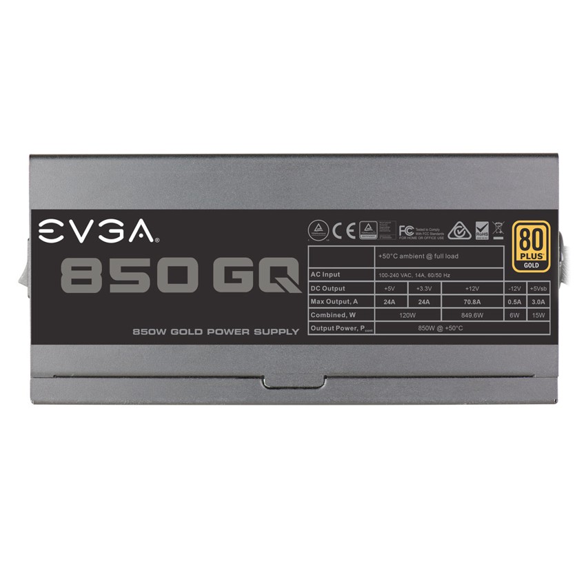 Descripción EVGA 850 GQ. Potencia total: 850 W, Voltaje de entrada AC: 100 - 240, Frecuencia de entrada AC: 50 - 60. Diámetro de ventilador: 13,5 cm, Número de ventiladores: 1 Ventilador(es), Ubicación de ventilador: Superior. Alimentador de energía para tarjeta madre: 24-pin ATX, Tipo de cableado: Modular. Utilizar con: PC, Power supply unit (PSU) form factor: ATX. Color del producto: Negro